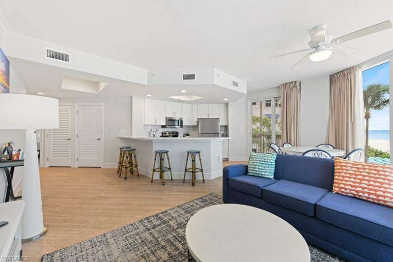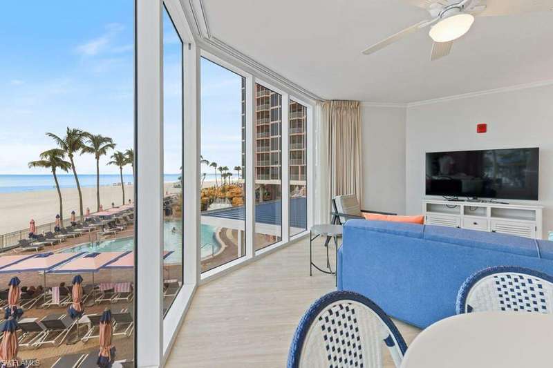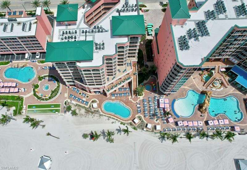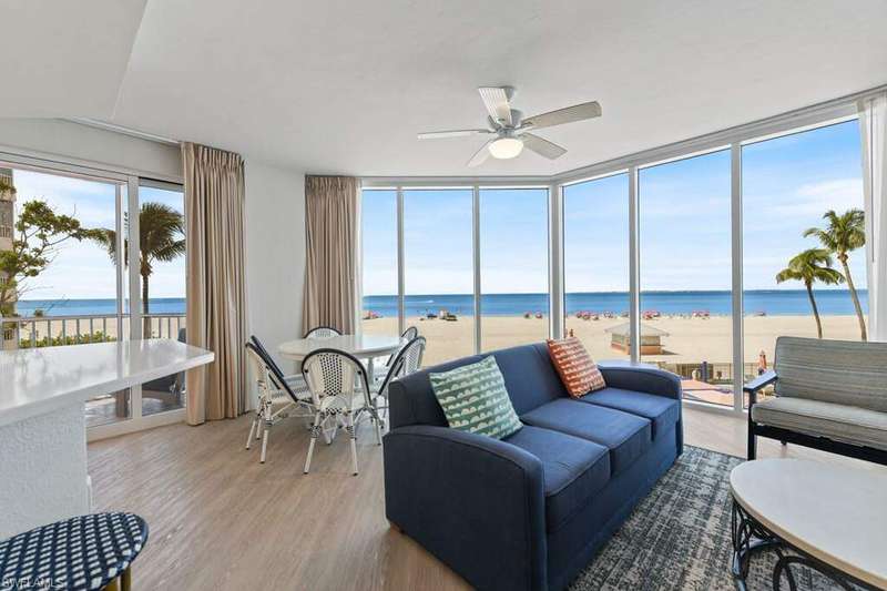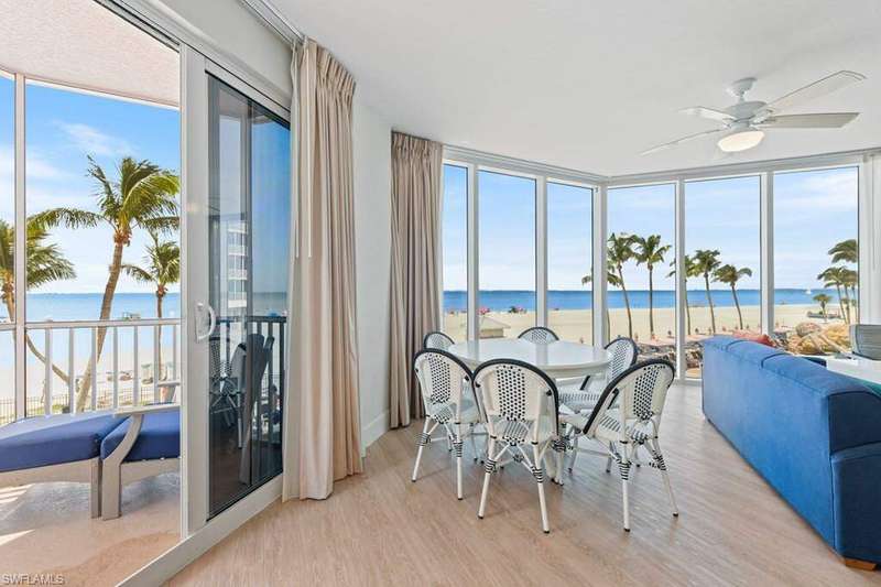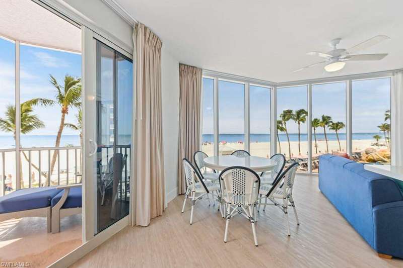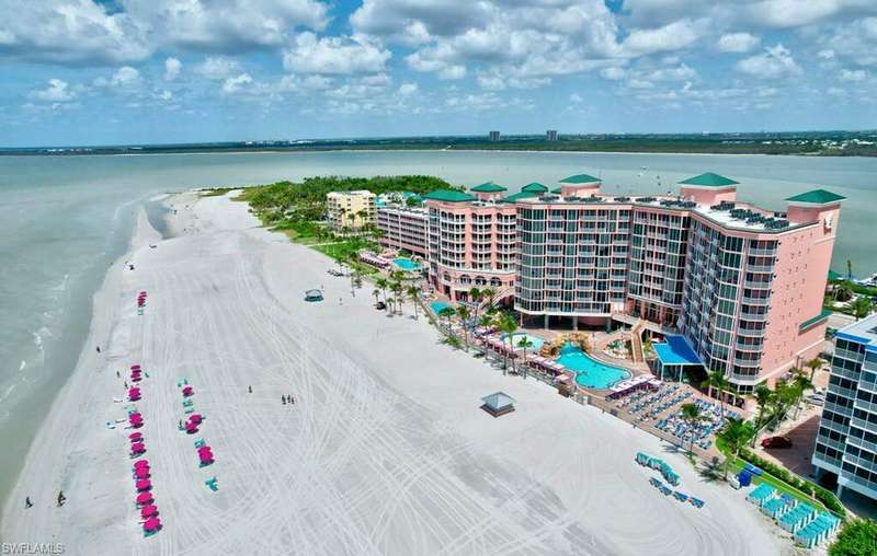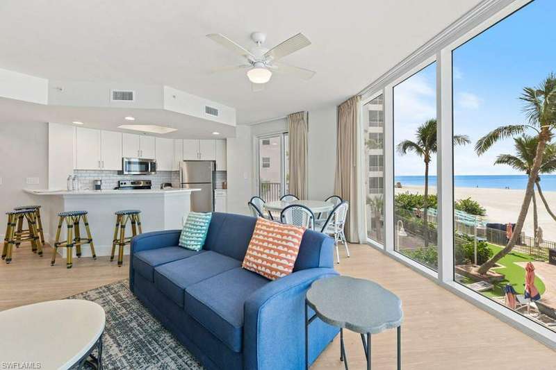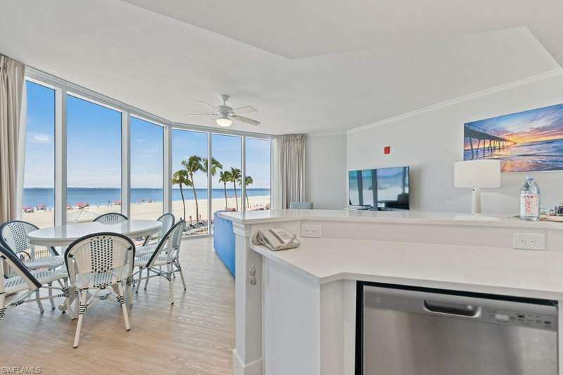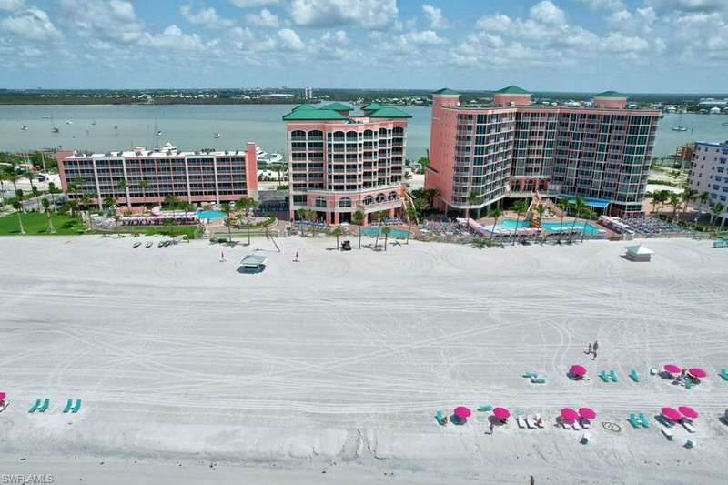 You have found THE MOST SOUGHT AFTER LOCATION on Fort Myers Beach! This two bedroom two bathroom beach-front condo with floor to ceiling glass walls is directly overlooking the beach and offers stunning romantic sunset views over Sanibel Island every single evening! Spacious corner unit located on the first floor makes it a quick stroll into the beautiful lobby, down to the main pool, and Bongos, the poolside tiki bar. The Pink Shell Resort offers multiple swimming pools with beach cabanas, water features, tiki bar, gift shops, ice cream, onsite restaurants, full marina, kayak rentals, fishing pier, luxurious spa, state of the art fitness center with Peloton equipment, business center beach and water sports, concierge and so much more. Owners can use their unit 28 days out of the year and have access to enjoy the amenities all year long! Situated on 12 acres directly on the beach and spanning all the way to Estero Bay offering you the Pink Shell Marina, a full-service marina where you can park your boat while you stay at the resort. The on-site rental management company takes care of all the reservation details so you can simply relax and enjoy your investment. In addition to the monetary dividends from this investment are the precious and priceless memories for you, your family, your friends or even your employees you allow use of your beachfront investment. This is one of the newest and most modern upscale resort condos in Southwest Florida. This stunning unit is newly remodeled and has a new 2025 Trane AC Unit. It's the best carefree beachfront investment on Fort Myers Beach you will find so don't let it get away!