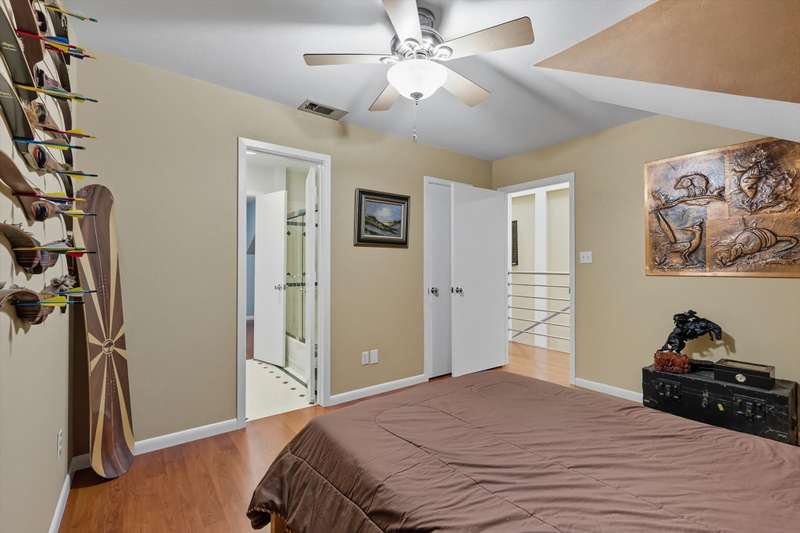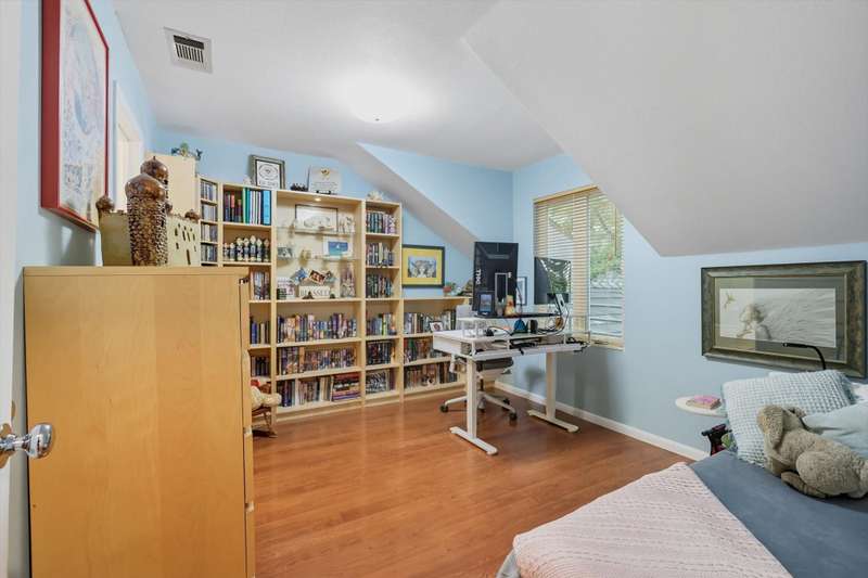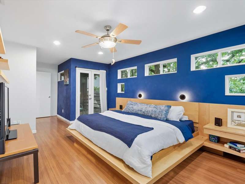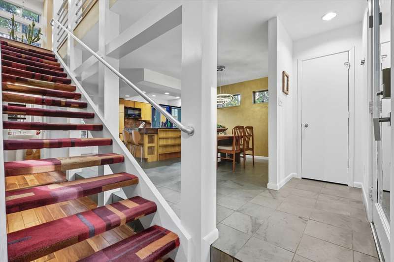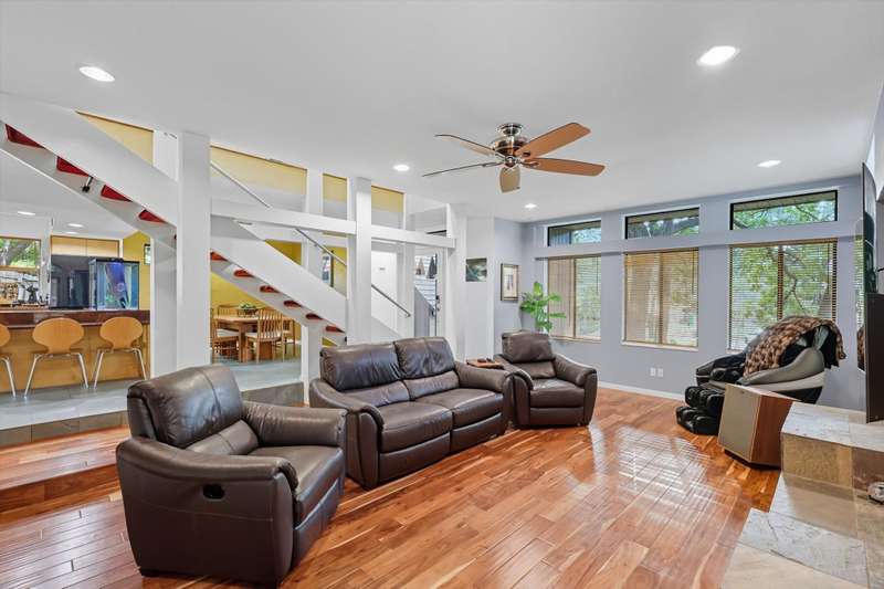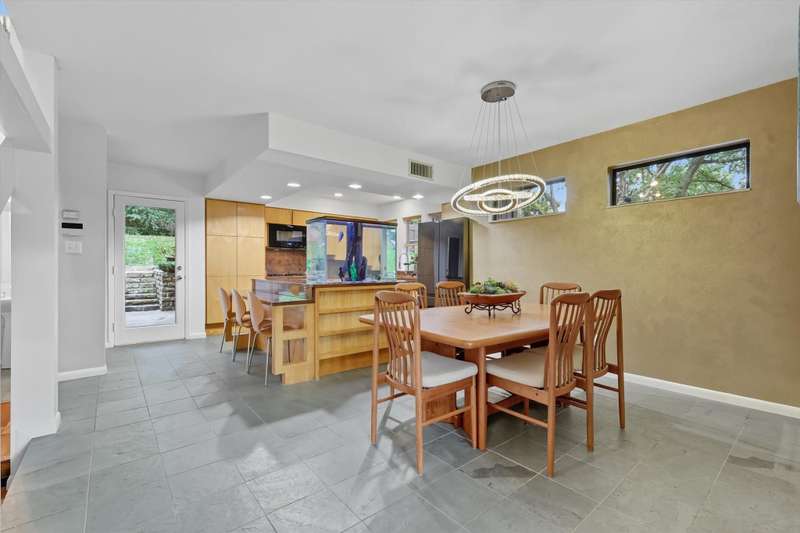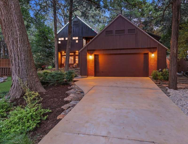 Designed by principal architect Steven Seitz, this one of a kind custom home blends smart, efficient design with contemporary style. Tucked among mature trees, this three bedroom, 2.5 bath home offers an open floor plan, abundant natural light, and thoughtful details throughout. The expansive Tigerwood front deck and flagstone patio provide inviting spaces for outdoor dining and relaxation, while the beautifully shaded backyard creates a peaceful retreat. Inside, youll find built-in bookshelves, custom cabinetry, and quality touches like spray-foam insulation and an engineered slab foundation. The master suite features a private balcony set among the treetops, perfect for morning coffee. Above the garage, an afforded floored bonus space offers endless possibilities man cave, home gym, or office. The detached garage itself is an impressive structure, large enough to accommodate multiple vehicles, including a boat! Lovingly maintained by its original owner, this home is a rare combination of architectural vision and everyday comfort.