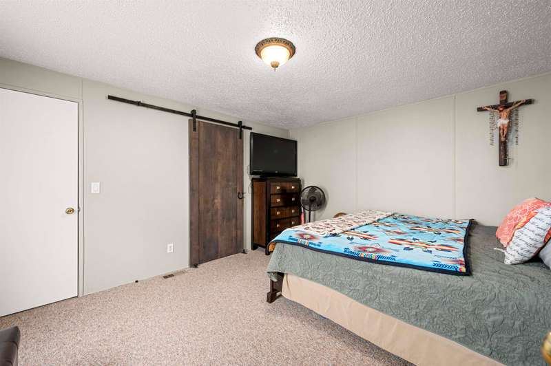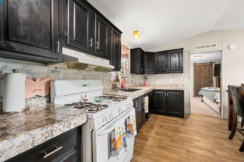 Step into this cozy 3-bedroom, 2-bathroom mobile home with a warm, welcoming vibe and modern touches throughout. The kitchen and living room have been refreshed with contemporary finishes, and the open layout makes the space feel inviting. A stylish mini bar area in the living room creates the perfect setup for entertaining guests. The primary suite features sliding barn doors leading into the attached bathroom, adding both charm and character. This home comes fully equipped with a gas range, range hood, black refrigerator, dishwasher, and washer and dryer—making it truly move-in ready. Enjoy the large fenced in yard and shed that stays for extra storage. Conveniently located near shopping, grocery stores, and quick access to the I-70 Business Loop, this home offers comfort and accessibility. Lot rent includes water, sewer and trash. Schedule your showing today!