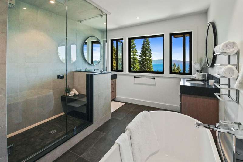 Panoramic Lake Tahoe VIEWS! We're so excited to present to you this sophisticated mountain modern design. As you enter into the great room, you'll be greeted by Lake Tahoe. Views are found in the family room, the 2 luxury en suites, downstairs bedroom, the upper deck and the outdoor living space. National Forest is the neighbor to the back and to the front creating privacy. Every detail has been thoughtfully selected to provide unparalleled living experience blending modern aesthetics with ultimate comfort and functionality. Every chef will love the kitchen featuring top of the line Thermador appliances including a 36" stainless steel French door refrigerator. Custom modern narrow edgeband cabinetry in clear alder provides ample storage in the kitchen and family room. The primary bath features a Mr. Steam system and a luxurious freestanding tub. Each of the five bedrooms, four baths, family room and especially the great room are spacious and truly beautiful. Rubicon's private HOA sandy beach, pier, buoy field and has plenty of room for the lakeside play. All located only minutes from Tahoma where you'll find local dining and essential shopping. Enjoy American pub fare at Chambers Landing or find out why Dog and Bear Tavern, Cult Burger and Where We Met are gaining notice for the outstanding offering. The year round recreation is endless with Desolation Wilderness, Rubicon Jeep Trail and Homewood Ski Resort all nearby.