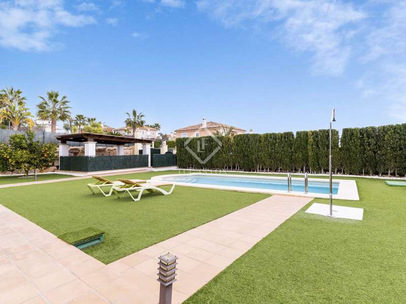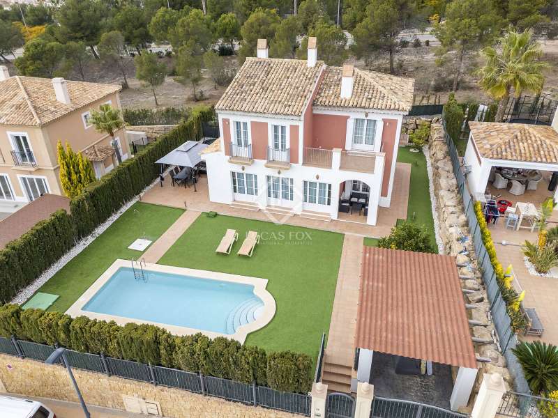 This stunning villa is located in a prestigious residential area of Finestrat, a sought-after destination known for its blend of tranquility and convenience. The area offers breathtaking views of both the Mediterranean Sea and the surrounding mountains, providing a peaceful retreat while being just a short drive from Benidorm and its vibrant city life. The property is also well-connected to essential services, including shopping centers, international schools, golf courses, and entertainment facilities, making it an ideal choice for families and investors alike. Built in 2015, the villa is set on a 628.31 sqm plot, featuring a beautifully landscaped garden, a private parking space, and a 28.14 sqm swimming pool, perfect for enjoying the Mediterranean climate. The property is designed for comfort and functionality, offering two floors with a well-thought-out layout. On the ground floor, you will find a welcoming hall, a fully equipped kitchen, a spacious living room, a toilet, and a guest bedroom. The open-concept design ensures a bright and airy atmosphere, complemented by large windows that allow natural light to flood the interiors. The second floor consists of three bedrooms, each with its own en-suite bathroom for maximum privacy and comfort. The master bedroom stands out with a walk-in wardrobe and direct access to a balcony, offering panoramic views. The villa is equipped with a water-based heating system powered by centralized community gas, ensuring efficient temperature control throughout the year. Every room benefits from ample natural daylight, enhancing the sense of space and warmth. This property is an excellent choice for those seeking a modern, well-located home with high-quality features in one of the best areas of the Costa Blanca