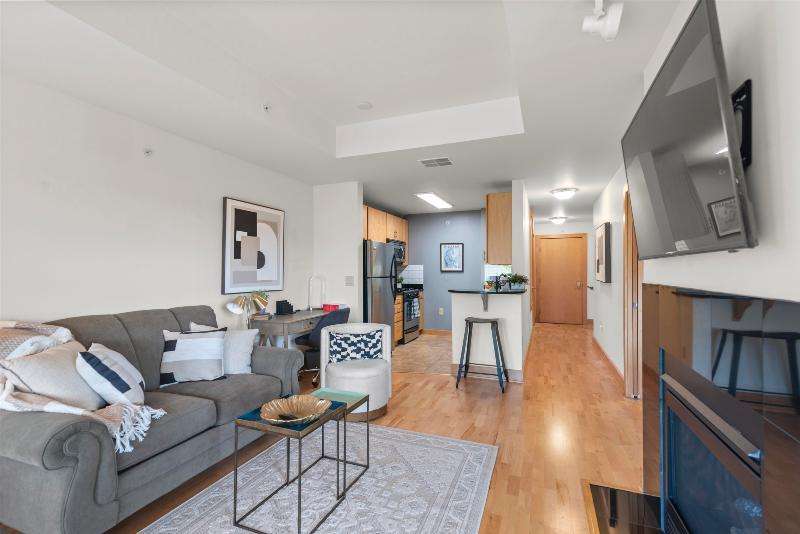 Live, Work, and Play in the heart of Madison! Stylish 2 bedroom, 2 full bath condo, comes completely furnished. Open layout with updated hardwood flooring throughout, Cozy two-sided fireplace, Gourmet kitchen with stainless steel appliances, granite counters & warm maple cabinetry. In unit laundry, secure well-maintained building, underground parking, fitness center and private storage unit add great convenience. Make sure to check out 6th floor outdoor terrace with greenspace, grilling and lounge areas, perfect for entertaining or relaxing. With two spacious bedrooms & baths, this condo is ideal for a roommate setup, 2nd home, or effortless downtown lifestyle. Lobby & floor renovations currently being done; new paint, lighting, fixtures & furniture. Next phase will be fitness center.