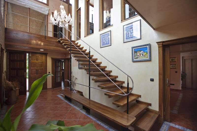 This unique property is located in Santa Apolonia, one of Valencia's most prestigious residential areas. The complex has 24hr. security and an exceptional social club with a pool and restaurant. The villa was built by one of Spain's most prominent construction companies using solid cement and unbeatable handwork. Even the finishes of the property are premium quality. It's important to highlight the excellent indoor and outdoor carpentry as well as the underfloor heating system. Set on a 2.000m2 plot, this house comes with a beautiful garden, a huge pool and an outdoor dining area. Inside, there is a large kitchen, a huge living room, a spacious dining area, six bedrooms and seven bathrooms between the main house and guest/personnel apartment. The master bedroom is a stand out feature of the property and occupies an entire floor with a terrace that provides spectacular views. It's also key to highlight the size and practicality of the kitchen, sufficient to cater for an entire family. The lift also allows the house to feel cosy and comfortable to live in despite it's imposing size. The basement consists of parking spaces, storage areas and a guest/personnel apartment. There is also an impressive 200m2 rustic and traditional style wine cellar, the perfect area to spend time with family and friends. The complex has a social club, 24 hour security, access to public transport links. It can be found just 20 kilometres away from the city of Valencia, a kilometre away from the city of Torrent and close to a variety of amenities such as schools and leisure facilities.