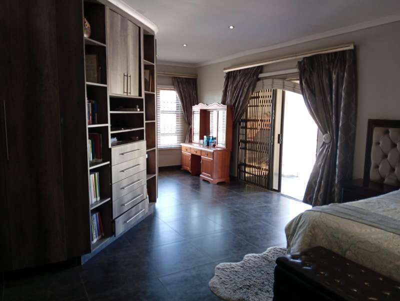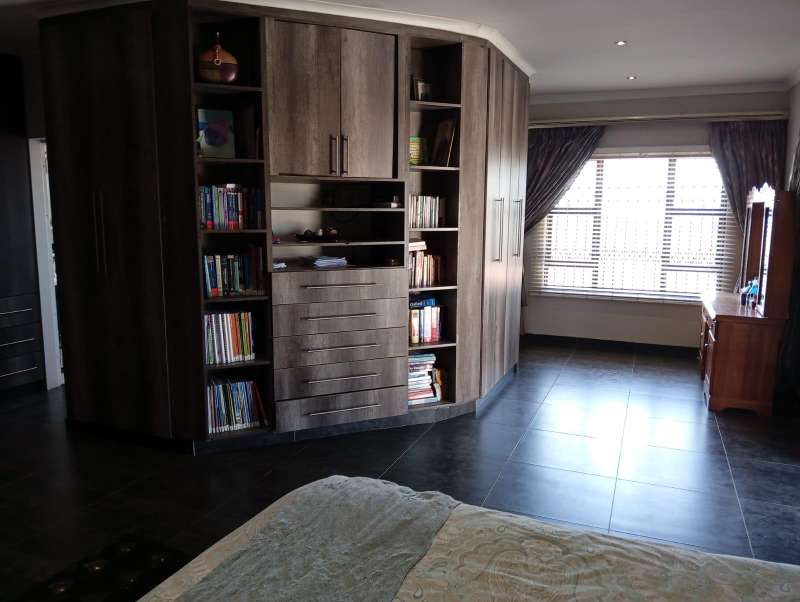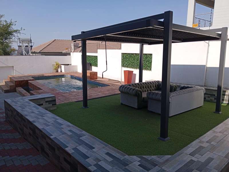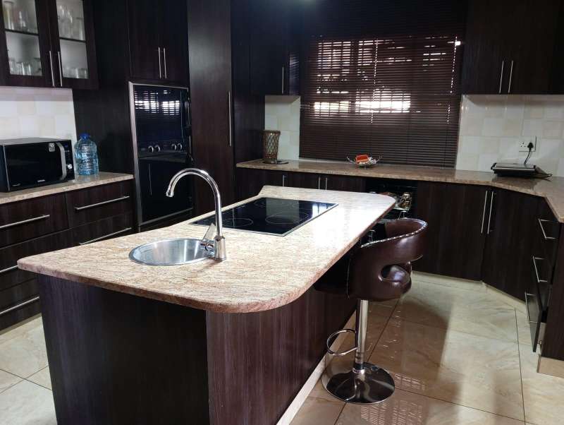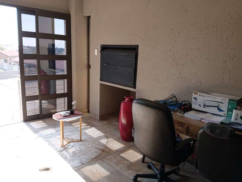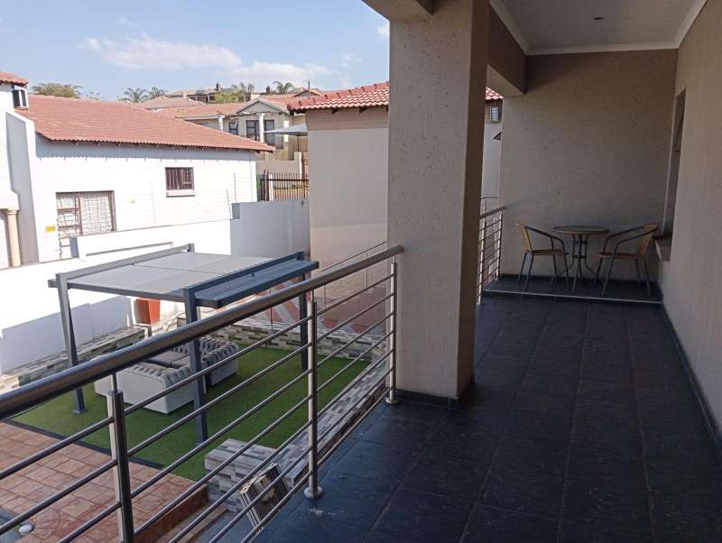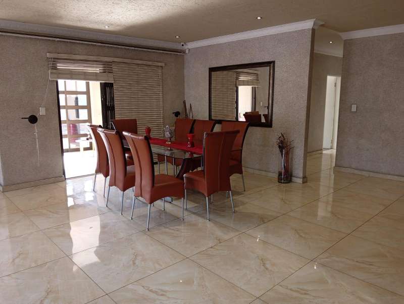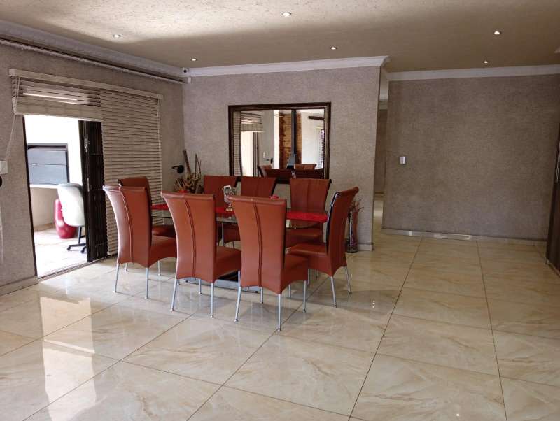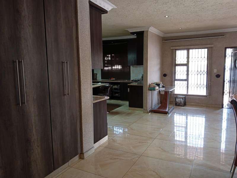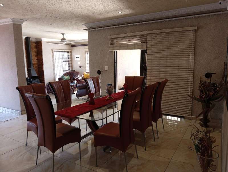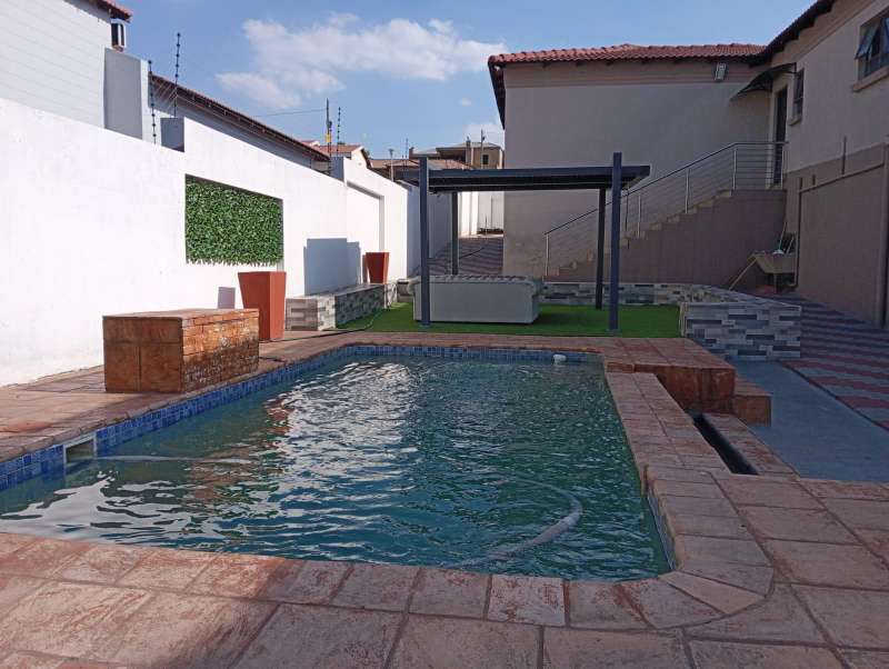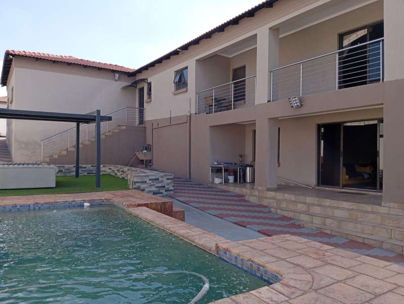 eautiful, Spacious & Modern Semi Double-Storey Home in an Upscale Neighbourhood This stunning home offers 5 bedrooms and 4 bathrooms, including 2 en-suite. The main bedroom features ample cupboard space and opens onto a balcony with scenic views, perfect for relaxing. The open-plan living area includes a lounge with a fireplace, a dining area, and a modern kitchen with a separate scullery and laundry. An enclosed patio with a built-in braai provides the ideal space for entertaining. Additional features include: Tiled flooring throughout the home A TV room that opens onto the pool area (can also be used as a 6th bedroom or a study) Two geysers and pre-paid electricity A 5,000-litre JoJo tank with a pump Automated garage doors Two separate entrances with motorized gates Alarm system, electric fencing, and CCTV with 8 cameras for extra security Pet-friendly property This is a must-see home in a sought-after location. Don?ÇÖt miss out ?Çö call me today to arrange a viewing!