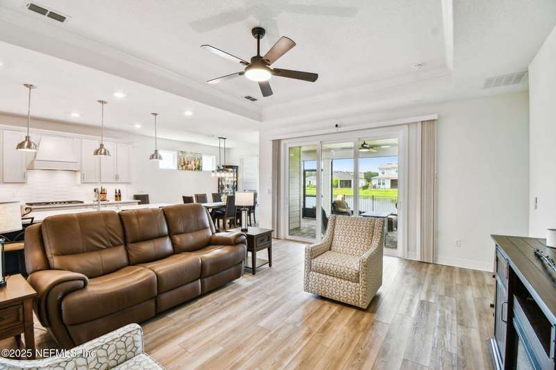 Welcome Snowbirds!! Lakeside Living in Exclusive Summer Bay at Grand Oaks - 55+ Resort-Style Community. This beautifully maintained 3 bedroom, 2.5bath residence offers serene lakefront views and a lifestyle of comfort and convenience. Step inside to discover luxury vinyl plank flooring throughout-both stylish and low-maintenance. The open-concept kitchen boasts a huge island, gas range, stainlesssteel appliances, and tons of storage for all your culinary needs. Enjoy seamless indoor-outdoor living with a triple sliding glass door that opens toa spacious lanai and paved patio, perfect for relaxing or birdwatching in this tranquil setting. You will also love the views from your large primary suite, offering a tray ceiling, garden tub, frameless shower and two spacious closets. This home has two other bedrooms, one with an attached bath, great for quests and one with a Murphy bed, perfect for an office space but convenient for when the grandkids come to town! Other things to mention: tons of storage, security system, water softener, tankless water heater and epoxy garage floor. Located just minutes from World Golf Village, historic downtown St. Augustine, and the sun-drenched beaches of Florida's coast, this home offers an unbeatable location. Summer Bay is a 55+ gated community with resort-style amenities including a pool, spa, pickleball courts, doggie park and a community garden-everything you need to live your best life. This home truly has it all! Schedule your private tour today!