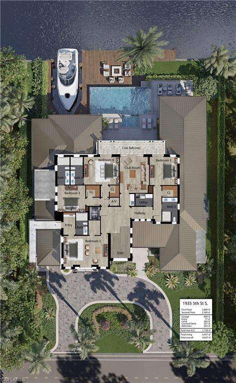 An exciting opportunity on a large lot in Aqualane Shores. Gracious entry to 100 feet at the water and 100 feet at the street lot. One of the best locations with a large water view and direct access to the Gulf of Mexico. Just a short walk to the beach, 3rd street restaurants and shops. Crafted by D. Garrett Construction and architecture by Jon Kukk. This 6,457 square foot home offers high end stunning coastal aesthetic with generous outdoor spaces. Transition from the home interior to the outside Lanai and rare cut in boat slip allowing the stunning waterside area to become part of the homes living experience. Nanny's apartment with separate exterior entrance. Rufino Cabinetry, HVAC Fresh Air Intake, Humidifier and De-Humidifier, Micro-tile Duct Board for Rigid Air Ducts, Whole House Make Up Air, Kitchen Hood Make Up Air. Wolf 48" Dual Fuel Range, Sub-Zero Refrigerator/Freezer, Sub-Zero 24" Wine Storage, Cove and Miele Dishwashers, Wolf Wall Oven, Wolf Coffee System, Zip System Roof, Gulflok Standing Seam Metal Roof with PVDF Paint Finish, Eastern Exposure for enjoyment of Lanai/Patio Area in Late Afternoon and Evening Hours, Built in Electric Storm Shutters/Screens for Lanai and Patio. Coffee bar in mater suite with refrigerated drawers.BOATER AFICIONADOS TAKE NOTE. This property has a Rare 17.4ft x 30ft Cut in Boat Slip PLUS a New Dock along the length New Seawall. CAR ENTHUSIAST TAKE NOTE. A True 3 Stall Garage with the ceiling height capabilities to add car Lifts for 6 Car Parking. Elevator services garage, 1st and 2nd floor of the house. Home has a 10 ft 1 inch elevation. October 10, 2025 completion. Custom design, finish in this home represents a uniquely high-level design, construction, finish, interior design and furnishings.