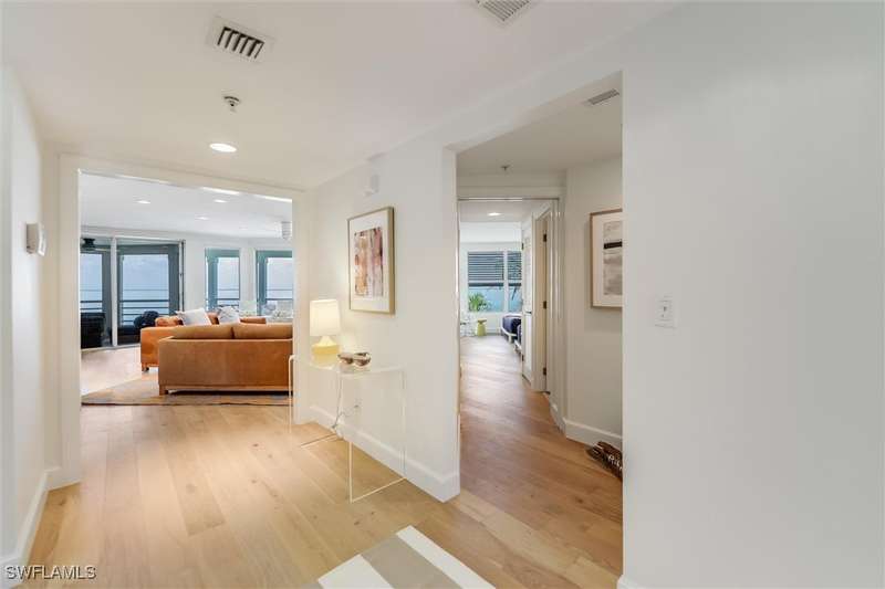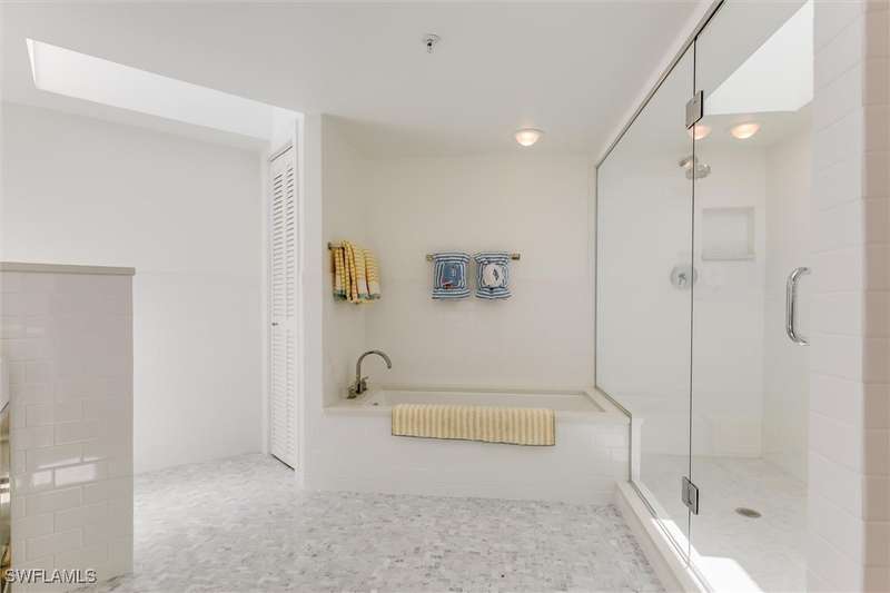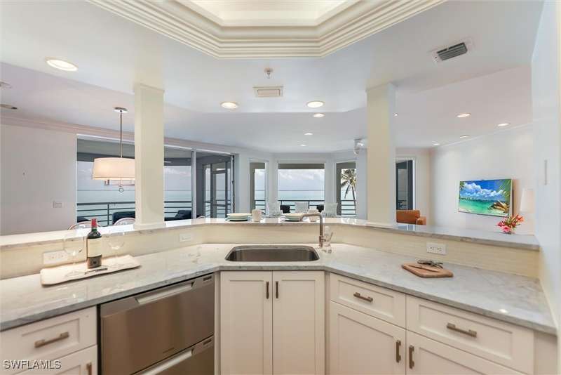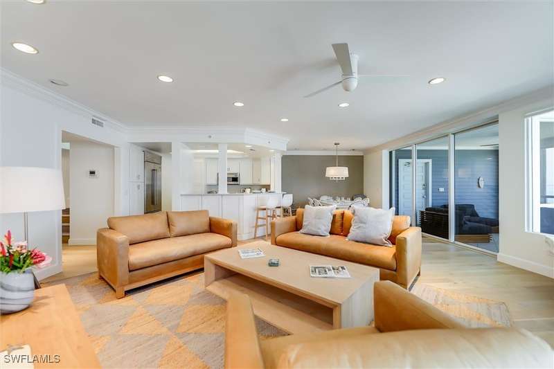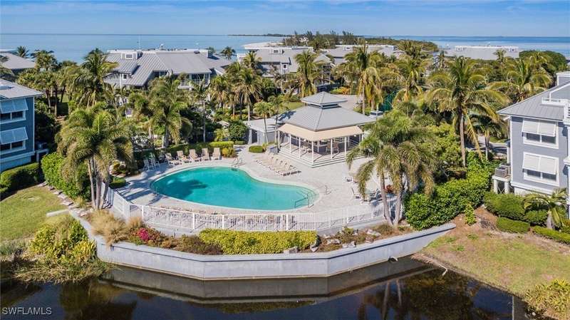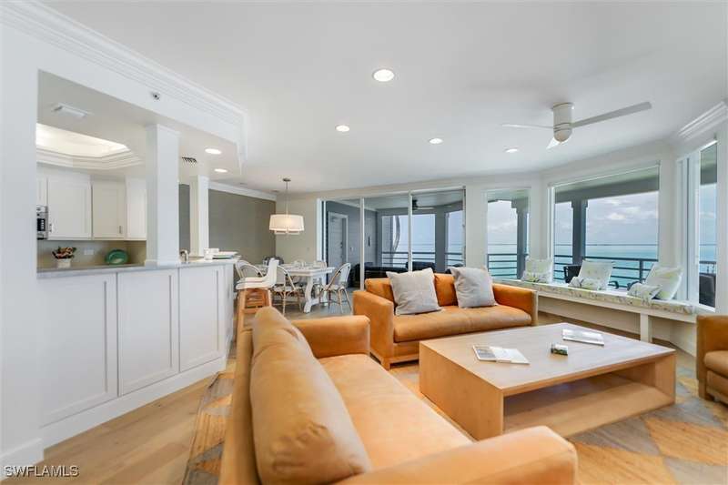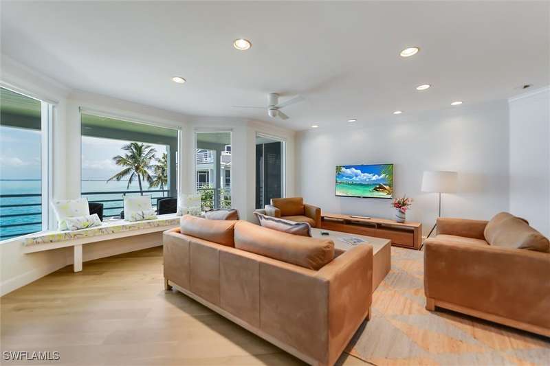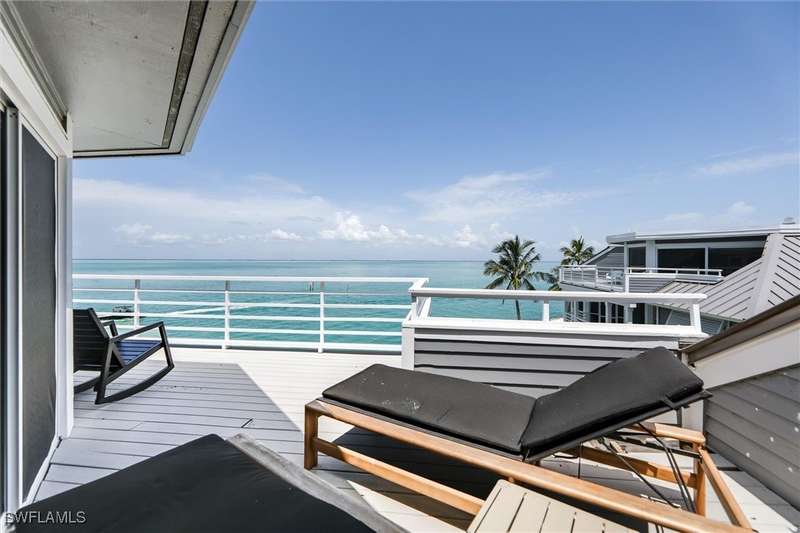Welcome to Land's End Village, a tropical oasis, located inside the gated resort of South Seas on the very tip of Captiva Island where the Bay & Gulf adjoin. This exceptional penthouse boasts an open floorplan, allowing for breathtaking views of Red Fish Pass, Pine Island Sound Estuary and Gulf waters. Three bedrooms / three baths with large bonus room that is now used as a 4th sleeping area or could be a nice office area. The unit in completely turnkey and renovated with modern finishes and a relaxed coastal feel. Improvements include a gorgeous engineered hardwood flooring, custom cabinetry and Carrera marble counters, high end kitchen appliances, beautiful furnishings, stylish bathrooms, impact rated windows and sliding glass doors, and an open style floor plan. The penthouse master suite offers magnificent views from the large open air terrace overlooking the sparkling Gulf waters. The master bath boasts modern finishes as well, including a comfy soaking bathtub and a spacious walk-in shower. En-suite 2nd master is located on the main floor with two queen sized beds, the bathroom has a double vanity with a bathtub/shower combo. The 3rd bedroom has a comfortable queen bedroom and private terrace overlooking the courtyard. The hall bathroom has a modern feel with unique style sink and inviting shower. The main floor has as screened lanai for lounging and an open air terrace which is perfect for dolphin watching. Lands End amenities include a resort-style pool, hot tub, fitness room (owners only), tennis / pickleball, grills, butterfly garden, outdoor seating, tropical and lush landscaping. The complex is comprised of 17 buildings with fresh paint, new roofs, new AC condensing units, new irrigation, new landscape lighting, refreshed gravel in parking areas. Each owner has a dedicated parking space and storage closet in the garage area. Please call for an appointment!