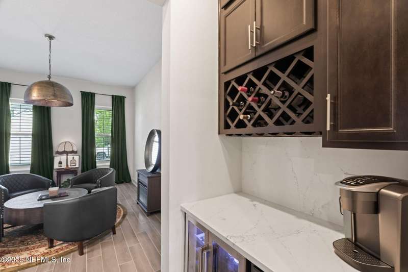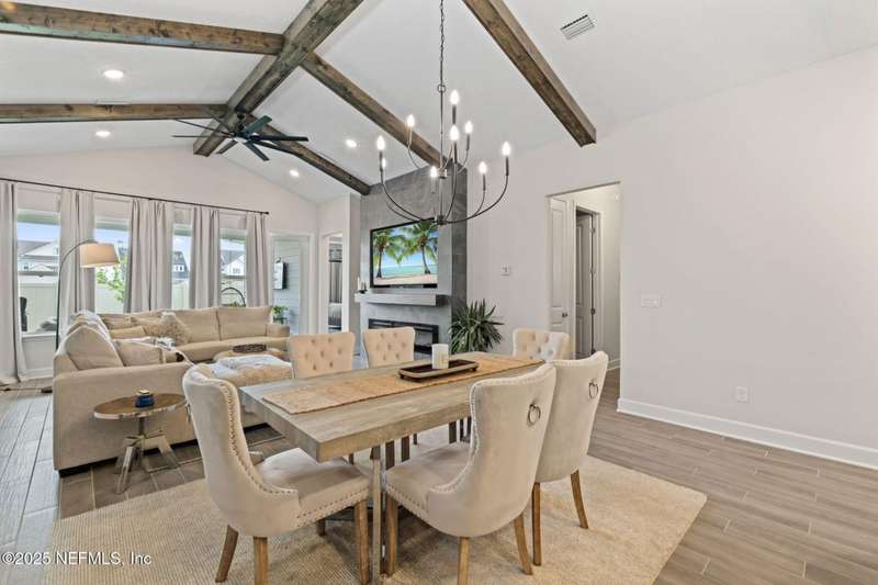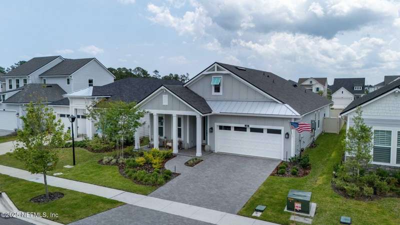 ****OPEN SAT 10/4 11am-2pm.***Nestled in the heart of Nocatee is this gorgeous, highly upgraded 2024 3 BR, 2 BA, 2174 sq/ft home. The owners love to check boxes and that's what they did when having this built for them by Providence Homes. So many upgrades and each is listed in the documents. Starting with the 4' extended garage, brick paved driveway and patio, upgraded tiling throughout, bespoke fire place, ceiling reaching cabinetry, bar w/beverage fridge, hood system, smooth finishes, gutters, fencing and quartz counters - WOW!!! Don't forget the custom beam treatment that gives a great post and beam vibe - WOW again! The lifestyle outside the home is equally as awesome as the home. Resort style pool, dog park and the wonderful amenities, dining, shopping and conveniences Nocatee has to offer. New elementary school coming soon for the area. Come visit this extremely nice home and with a few signatures you can call it yours! **See supplemental remarks for add'l upgrades Additional to all of the listed upgrades there are many more that homeowners and builder have added. They include:-Bahama shutters-custom TV/Fireplace wall-whole house water filtration system-flat finished walls-custom primary closet built ins This home truly has it all.