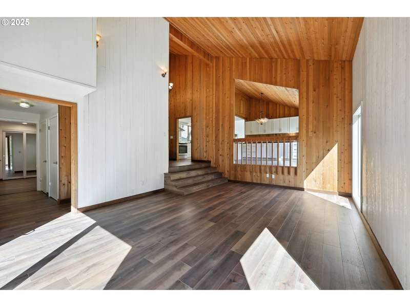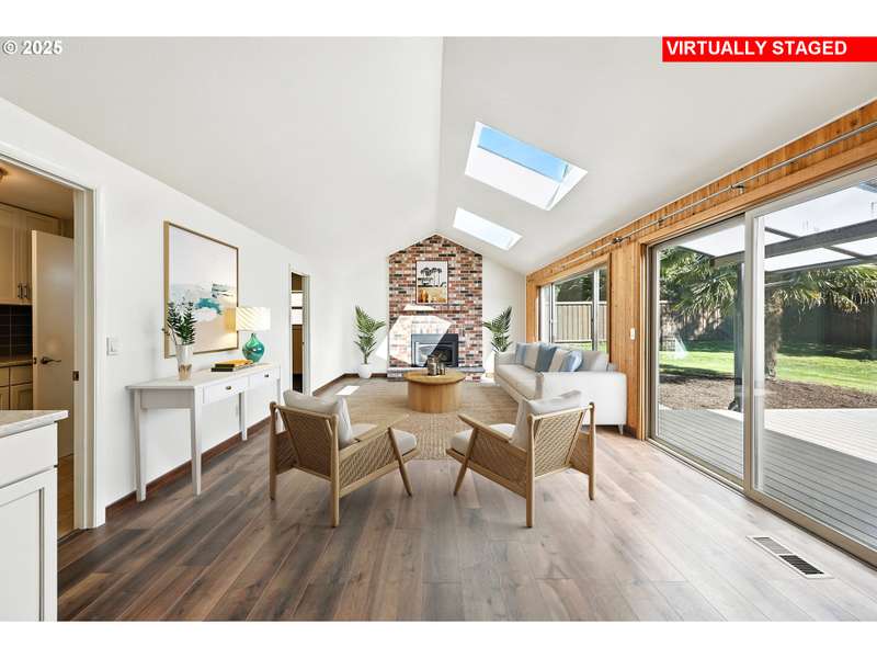 New Price! This home has been completely redone inside and out! Move in ready! An absolute Oasis just half a block from the Willamette River! Private and quiet on a no outlet road! Thoughtfully updated and refreshed, this home offers a perfect blend of character and modern comfort. A spacious entry leads into a light-filled sunken living room with warm wood-clad walls and vaulted ceilings. The newly remodeled kitchen opens to a generous dining room with a full wall of built-in storage, while the inviting family room features vaulted ceiling, gas insert fireplace w/remote and access to a brand-new covered patio. The main level includes laundry and two large bedrooms. Upstairs, the private primary suite offers a luxurious new bathroom with walk-in shower, dual closets, and enough space for a cozy sitting area. The oversized two-car garage includes abundant storage and a professionally finished Polyaspartic floor—durable and easy to maintain. Outdoors, the fully fenced grounds offer mature landscaping, space to park an RV or boat, and multiple private retreats: a covered patio off the family room and an additional patio off the living room. New furnace installed 8/2025 A rare find—peaceful, private, and just steps from the river.