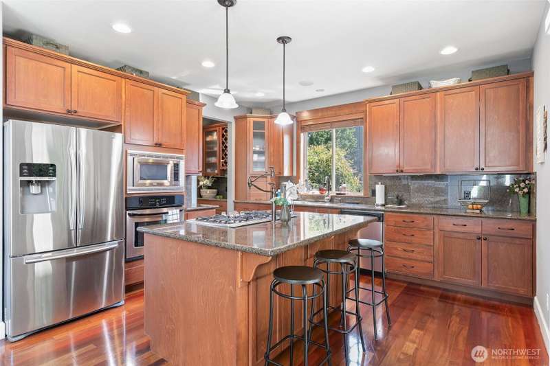 Welcome to this stunning Renton Highlands home where style, comfort, and convenience come together. Beautifully maintained, it features a dedicated office/den, elegant formal dining room, and a soaring vaulted family room filled with natural light. The main-level primary suite offers privacy and ease of access. Upstairs, a spacious junior suite with ensuite bath is perfect for guests, while a large entertainment room sets the stage for movie nights or gatherings. Three additional bedrooms provide room for all.Step outside to a private backyard designed for relaxation and entertaining. Located within the highly sought-after Issaquah School District, this home checks all the boxes.