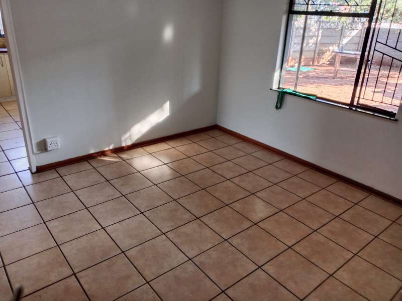 This comfortable family home has so much to offer. You will find a living room, dining room and kitchen with cupboards. There is 3 bedrooms and 2 bathrooms. The bedrooms have built in cupboards and on outside you will find a big yard with a double garage for parking there is a shade net parking as well and devils fork fence. Double Garage 3 Bedrooms 2 Bathrooms 1 Livingroom 1 Dining room 1 Kitchen Big Yard Shade net parking for 2 vehicles Devil forks fence in front of house