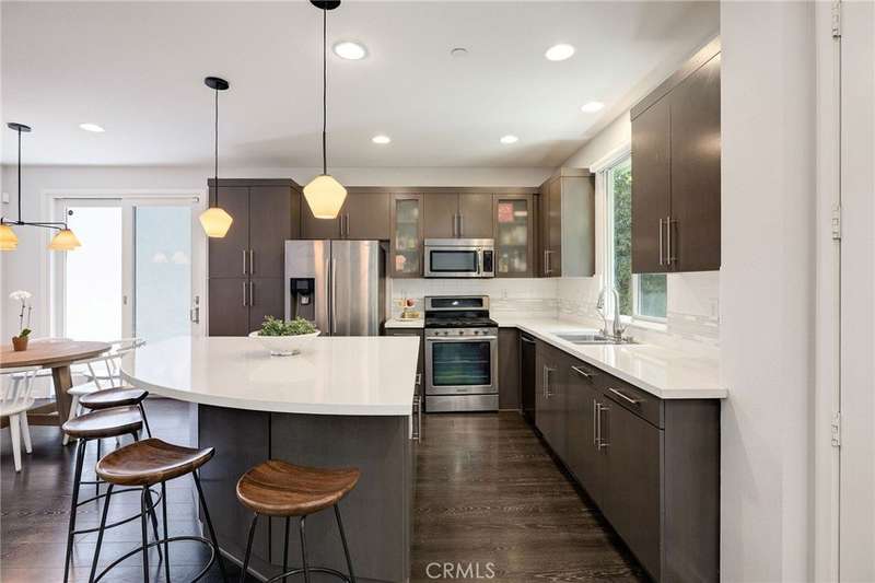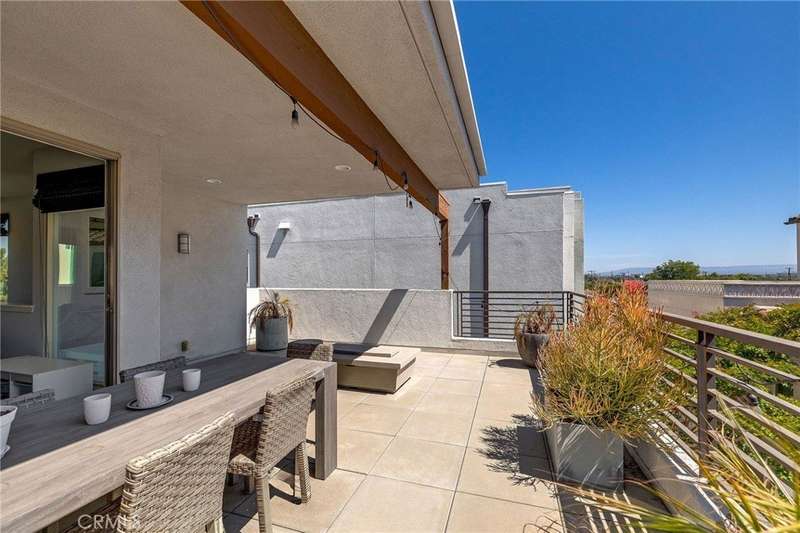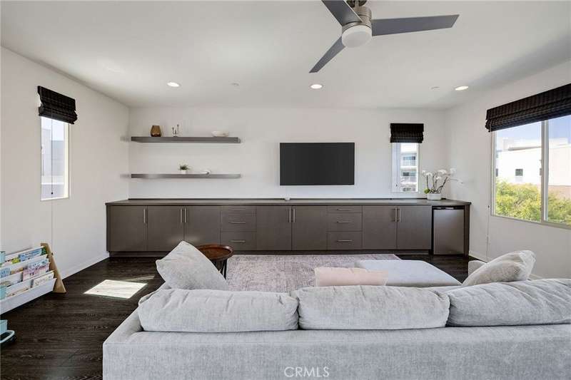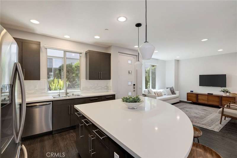 Enjoy a refined modern lifestyle in the prestigious gated community of ThreeSixty South Bay. This detached Terrace home offers privacy with no shared walls, low HOA dues and a thoughtfully designed layout suited for both everyday living and entertaining. Step into the open living area bathed in natural light seamlessly connected to a stylish kitchen featuring flat-front cabinetry, quartz countertops, stainless steel appliances and a spacious center island perfect for daily meals or gatherings with friends. The dining area opens to a secluded, south-facing patio, just the spot for a bistro set or container garden. A guest powder room and direct access to the attached two car garage with storage complete the first floor. Upstairs, all three bedrooms are located on the second level, along with a versatile landing area currently utilized as a home office. The primary suite features a walk-in closet with custom built-ins and a dedicated contemporary bathroom with dual sinks, while two additional bedrooms share a full Jack-and-Jill bathroom. The laundry room is conveniently situated nearby. The third floor offers an airy media room or secondary living area with a soaring ceiling, abundant built-in cabinetry, a bar top and a beverage fridge - perfect for movie nights, working from home or simply relaxing. A wall of windows opens to a generous deck that extends indoor comfort into an inviting outdoor setting. True to its Terrace namesake, this standout space captures the essence of elevated South Bay style. Additional highlights include central air conditioning, a nest thermostat, reverse osmosis water filtration and a smart security system. As a ThreeSixty South Bay resident, you’ll enjoy access to five star resort-style amenities including two pools with cabanas, a full gym, sports courts, dog parks, a playground and a clubhouse set within a secured community located in the top rated Wiseburn School District. All of this, minutes from LAX, the beach, major freeways, shops and restaurants. The perfect place to call home just in time for summer!