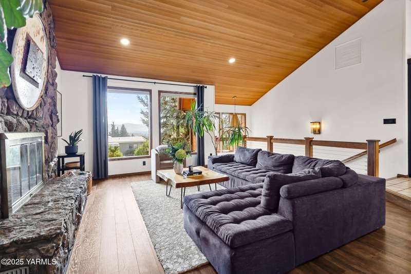 Stunning, light-filled 3-bedroom, 4-bathroom home on a spacious .51-acre lot. A grand double-door entry with tiled floors welcomes you into a front living room framed by tall windows capturing beautiful views. The main floor also features a private office, while the upper-level den boasts a fireplace, wet bar, and cedar ceilings--perfect for entertaining or relaxing.The bright and functional kitchen offers tons of storage, an induction cooktop, double ovens, ample counter space, and a pass-through window to the covered patio. Picture windows highlight the dining room, and a gorgeous staircase leads to a huge lower-level den/family room--ideal for movie nights, games, or gatherings. A large laundry/utility room adds convenience and organization.The primary suite features a walk-in closet, soaking tub, and large windows letting in abundant natural light. Step outside to the backyard oasis with an in-ground pool with new heater, underground sprinklers, drip systems, and mature landscaping. This home offers a perfect blend of comfort, functionality, and spaces designed for living and entertaining.