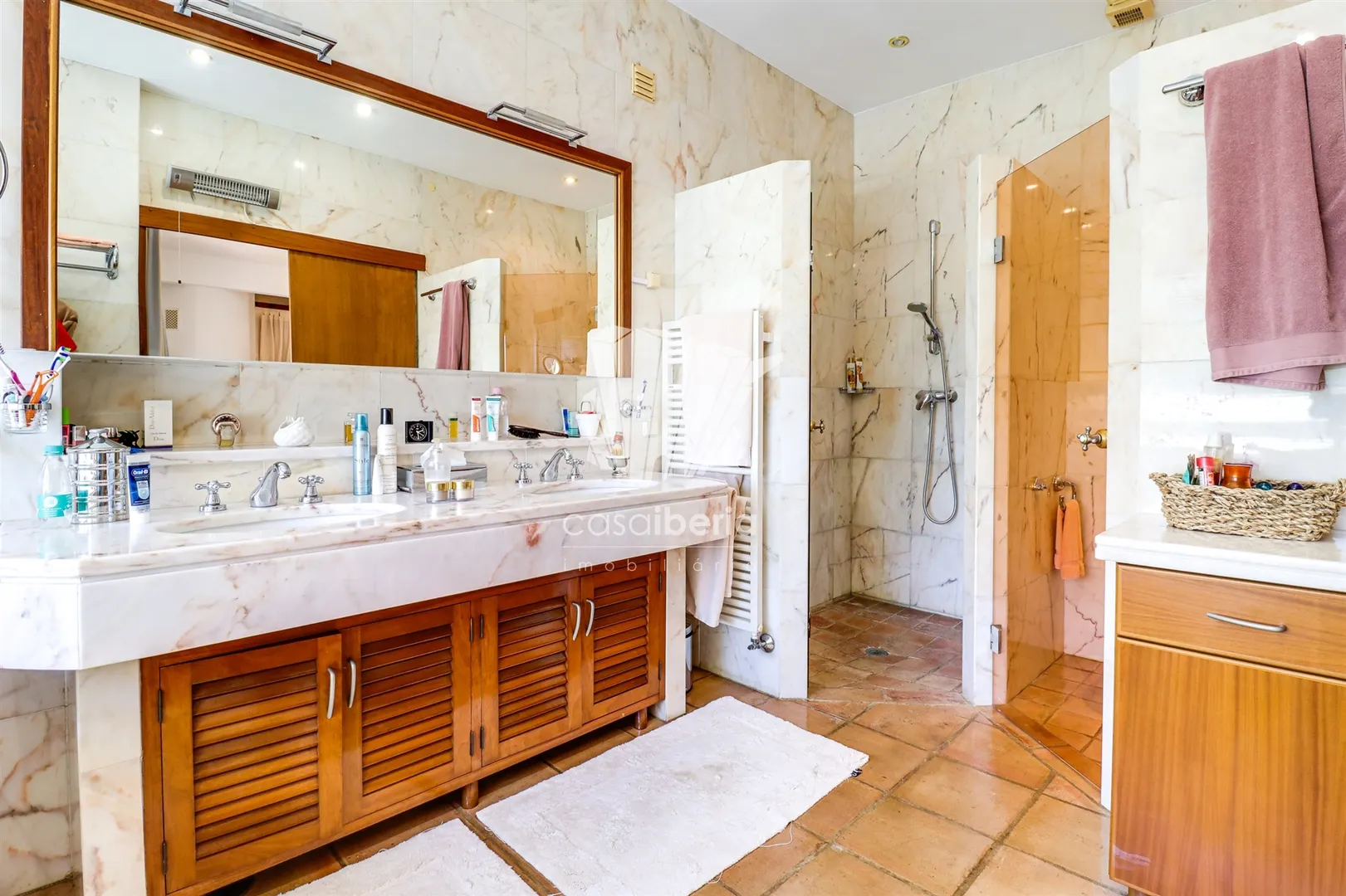 The Santa Catarina terracotta flooring, typical of the Algarve, adds a rustic and welcoming character to the entire house, harmoniously blending with the architectural elements.