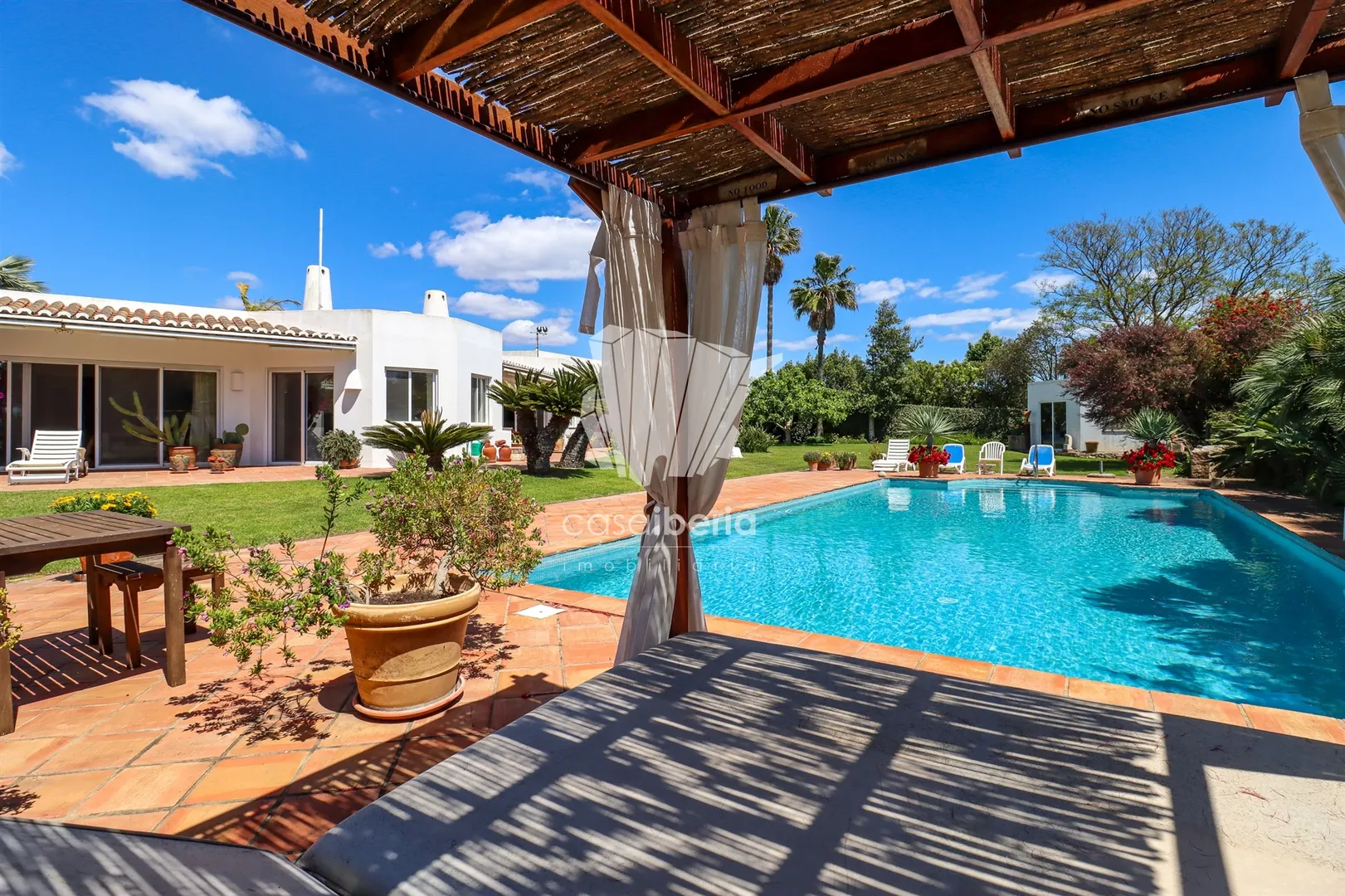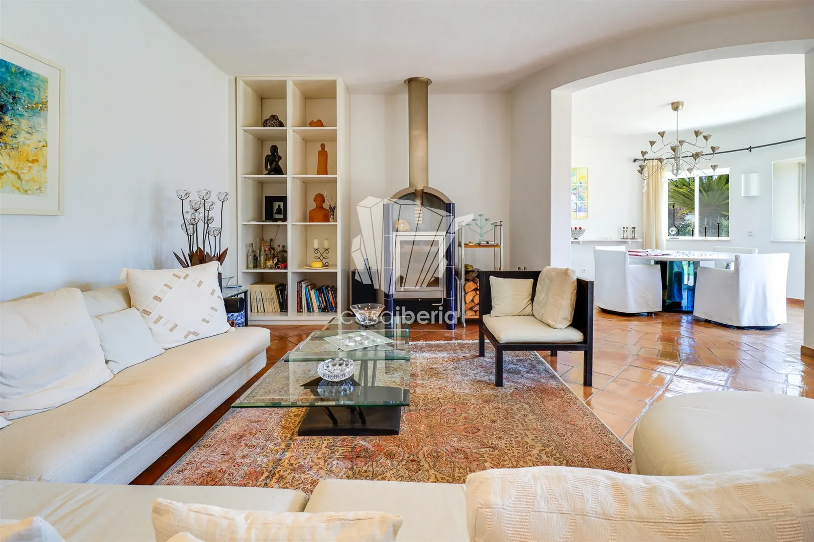 Outside, the villa is surrounded by a beautifully maintained garden with a swimming pool, barbecue area with awning, support/storage house, and cozy corners perfect for relaxing. It also features solar panels and the right to use a shared tennis court.