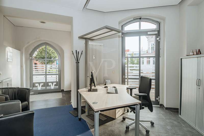 Representative, stylish commercial space in the economic heart of Warnemünde - on the first floor of a stylish residential and commercial building in a top location! The location and size of the pleasant premises as well as the diverse possibilities of use make this commercial space, which is located in a stylish brick building as a corner location with advertising appeal, so interesting! Access is possible from Kirchenplatz as well as via Poststraße via two main entrances (barrier-free!) with invitingly large glass doors and a portal door. Furthermore, another 6 glass door elements offer additional access possibilities. An attractive, individually usable, bright and well-kept commercial space awaits you, which offers special charm and a lot of potential! A division is possible. Currently, an entrance area and two separate rooms divided by glass walls are connected to the spacious public area. Furthermore, the area holds two sanitary facilities, pantry kitchen, technical room, archive and a cellar ready. Stylish circa 145 square meters await you in a top location! A lease is possible immediately! The Kirchplatz forms the economic center of Warnemünde and is surrounded by high-quality gastronomy, retail space and office space. Here is almost year-round hustle and bustle and the square is always highly frequented. In addition, it offers parking facilities, which are thus located directly in front of the door. The striking brick building houses other businesses, including a post office and a supermarket. We would be very pleased to present the area to you in full. Please make an appointment with your full contact details.