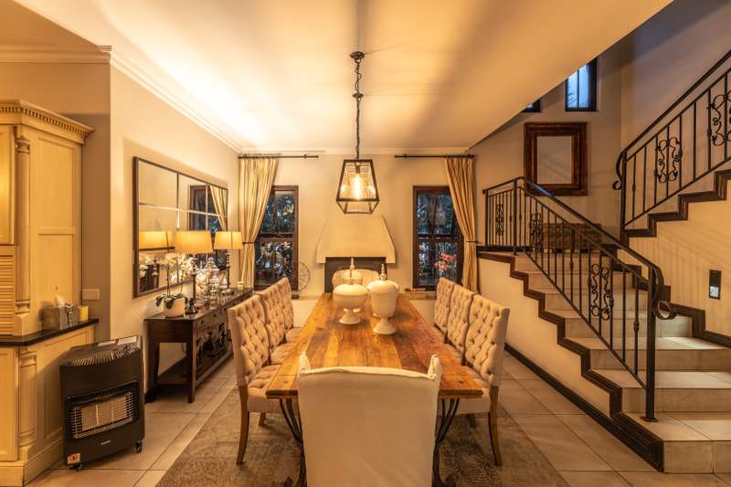 Nestled in the heart of Dainfern Valley, this west-facing 4-bedroom, 3.5-bath sanctuary is more than a home—it’s a stage for unforgettable gatherings. With its soulful blend of modern Mediterranean warmth and country charm, it’s designed for families who love to entertain, connect, and celebrate life together. Golden sunsets spill across terracotta tones, soft wood textures, and elegant archways, setting the mood for evenings that begin with laughter and linger long into the night. The open-plan layout flows effortlessly from the sunlit kitchen—complete with farmhouse touches and sleek finishes—to the inviting lounge and out onto not one, but two covered patios. Whether it’s a twilight braai, a birthday brunch, or spontaneous drinks with friends, these versatile outdoor spaces make hosting a joy. Each bedroom offers a private retreat, with the master suite overlooking the garden and featuring a spa-like en suite that whispers relaxation. But it’s the shared spaces—inside and out—that truly define this home’s spirit: warm, welcoming, and ready to play host to your most cherished moments. For families who crave both style and sociability, this is where memories are made and stories begin.