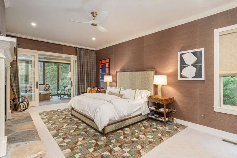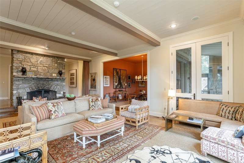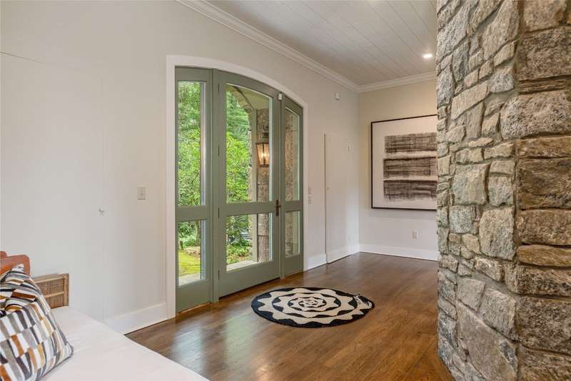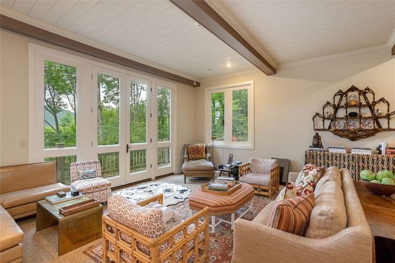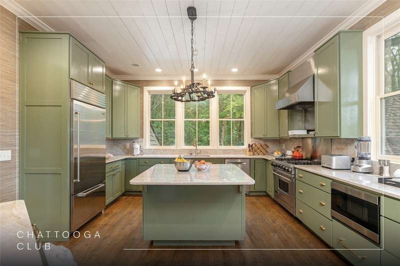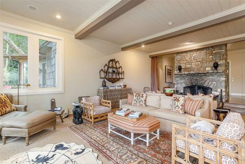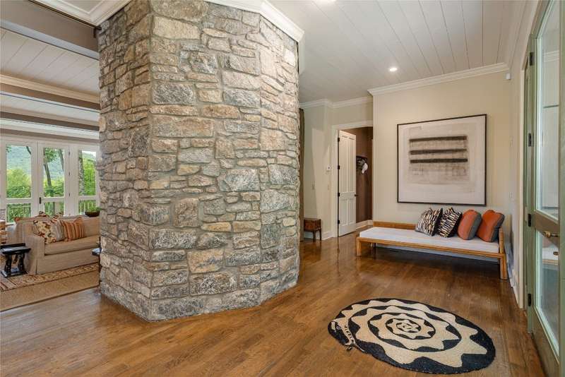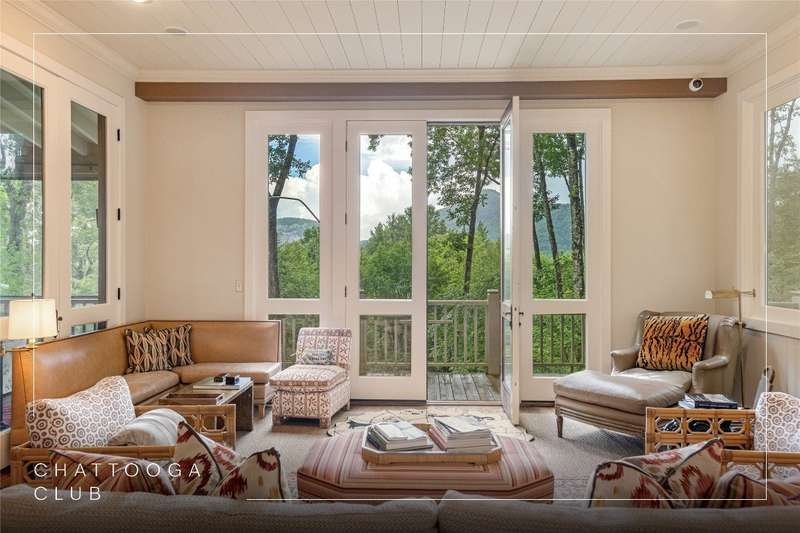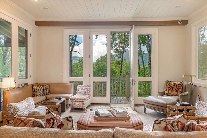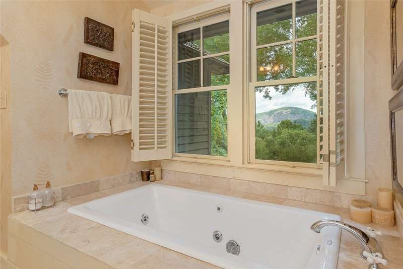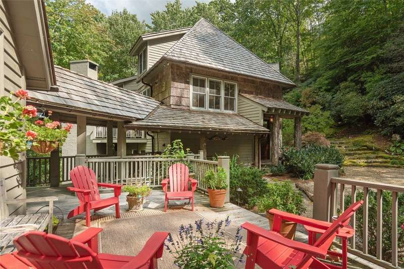Enjoy peace and privacy on 1.87 acres of secluded forest in the gated Chattooga Club neighborhood. This property boasts a stunning stone entryway and immaculately manicured paths that lead to the most comfortable living on the Plateau. The great room offers a space to relax with a stacked stone fireplace and long-range views of Chimney Top and Rock Mountains, while the expansive screened-in deck is an ideal spot to enjoy the sights and sounds of nature with family and friends. The spacious kitchen features an island that's perfect for entertaining with top-of-the-line appliances and modern cabinetry. On the main level, the luxurious primary suite features a fireplace, an attached sunroom, and a generous ensuite bathroom with a walk-in shower, a walk-in closet, and its own laundry space. Upstairs, there are two guest bedrooms with ensuite bathrooms, a cozy sitting room, and a bonus room. The lower level features a bedroom with an ensuite bathroom and an additional living space with a wet bar that connects to the wine cellar. There is also a detached guesthouse over the garage with a cozy sitting room, a kitchenette, and a private bedroom with bathroom, providing privacy for family members or guests and connecting to the main house via a short covered walkway. Along with its breathtaking views, the property comes with a vacant lot that backs up to the house, a waterfall, picturesque grounds, a screened-in standalone pavilion with a fireplace, a grill, and ample space to relax and enjoy the sounds of the running water. Located just two miles - a 5-8-minute drive - from the crossroads and all the shopping and dining amenities, this exquisite home offers everything that's needed to enjoy a refined mountain lifestyle.