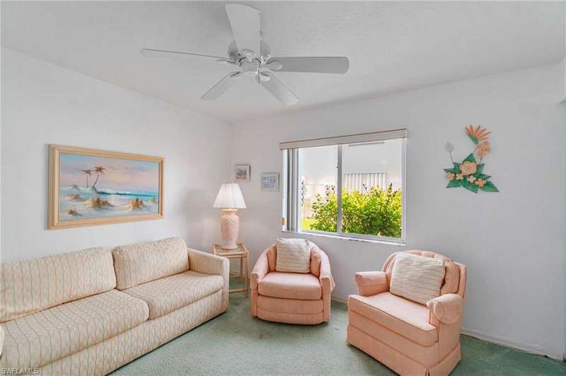 Light and bright FIRST-FLOOR CORNER END UNIT with 3 bedrooms, offering panoramic views of the sparkling lake and walking path in the sought-after Sapphire Lakes community. This condo is being sold furnished, making it move-in ready for season-perfect as a winter retreat or an excellent rental investment. Enjoy serene mornings on the screened lanai overlooking the lake, complete with electric hurricane shutters for peace of mind while away. Sapphire Lakes is a vibrant, gated community featuring pickleball, bocce, tennis, picnic areas with grills, scenic walking trails, and four heated pools. Centrally located, just 5 miles to 5th Avenue dining, shopping, and Naples' Gulf beaches. Schedule your showing today & grab this first-floor end unit before it's gone!