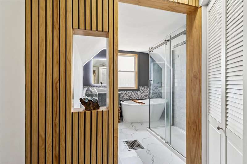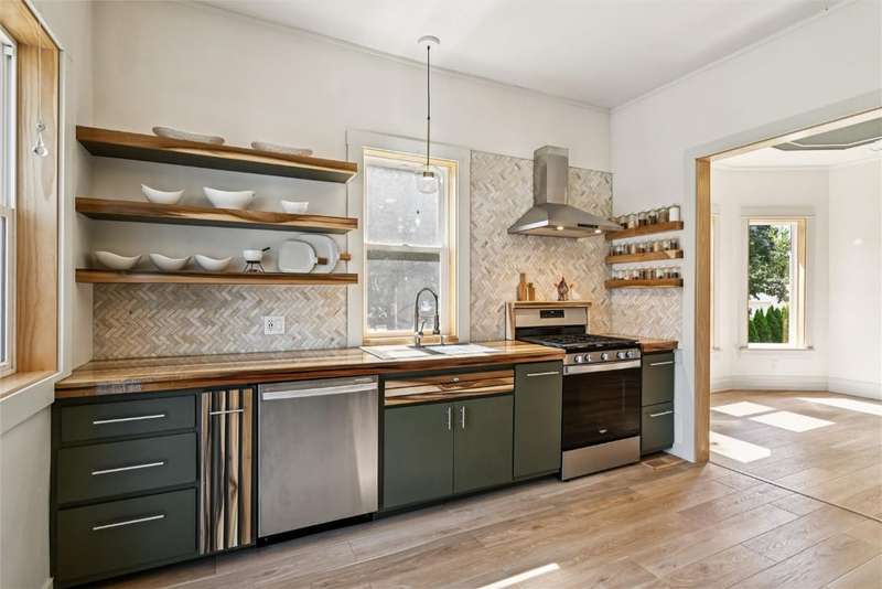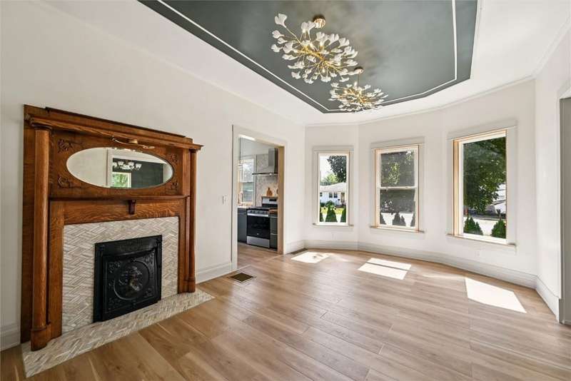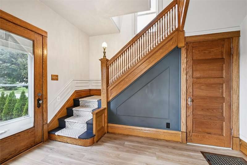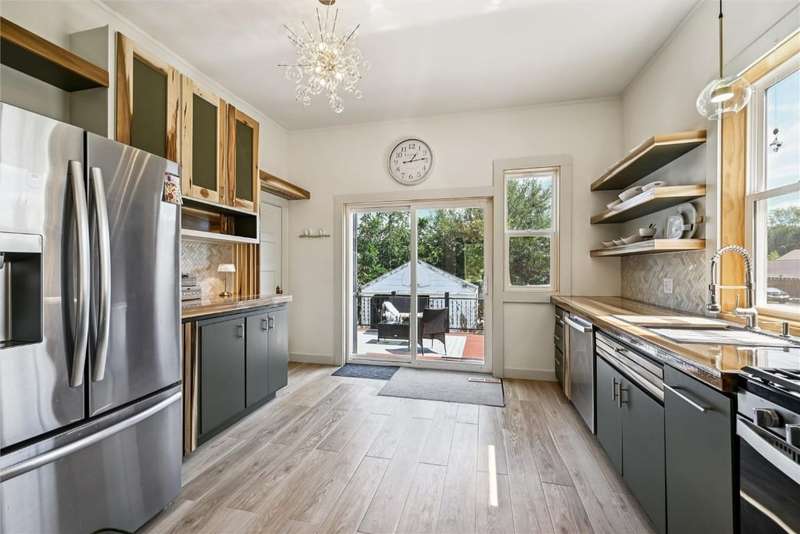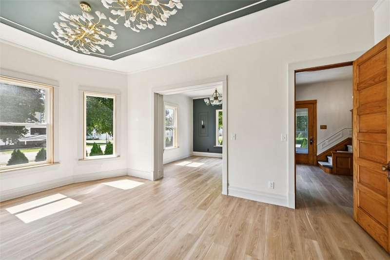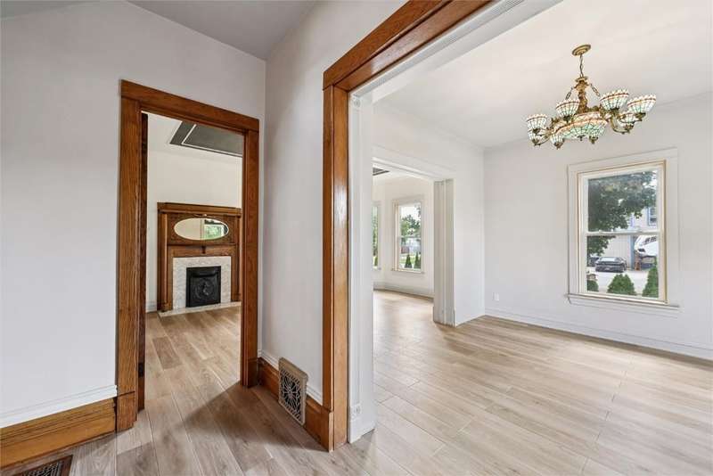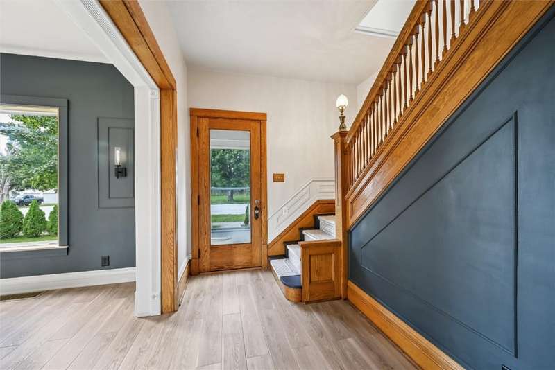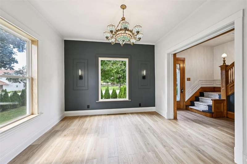 Extensively remodeled home with one of a kind, unique designs you will not find anywhere else. Inspired by Nordic and Japandi styles characterized by clean lines, natural materials, large windows, cozy colors and minimalistic designs. The main floor boasts 9 foot ceilings with tall oak doors. The Master bedroom has a walk-in closet and a full bathroom featuring a floating vanity with a half moon mirror. The spacious kitchen features wood countertops, floating shelves, stainless steel appliances and a hidden pull-out island. A sliding glass door provides easy access to the comfy deck. Original fireplace with bay windows and a porcelain chandelier makes for an impressive dining room. But not to be outdone is the Tiffany chandelier in the living room next to the open oak staircase illuminated with a chandelier from Turkey. Upper level has 3 bedrooms, an office,full bathroom and access to a tall attic. 1st floor laundry, newer roof, furnace, central air, siding, windows, electrical and plumbing with an 8 foot tall full basement. The yard has a living border of evergreens and enjoy the backyard patio with fire pit and outdoor furniture. The house borders the town park and is 1/2 block from the Elementary school. A short 30 minute drive to Cedar Rapids makes it easy to access all the city offers. This is an impressive, must see home that is move-in ready