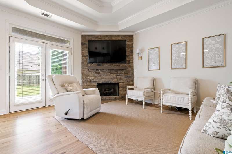 Welcome to this BEAUTIFULLY updated 3 bedroom/2bathroom home located in a GATED community with RESORT STYLE AMENITIES! Enjoy LOW St. Clair County taxes, while being zoned for highly sought- after Trussville schools. This MOVE IN READY home features a BRICK exterior, fenced backyard and CONVENIENT main level garage. Inside you will find FRESH and CURRENT updates with NEWER lighting, paint AND flooring. Owners added STACKED STONE fireplace surround that gives so much CHARM and COZINESS. The layout is functional AND versatile for many types of home owner. The kitchen is SPACIOUS offering lovely countertops, lots of cabinets and perfect breakfast bar area for additional seating! Additional storage in MAIN level garage and pull down attic. Carrington Lakes offers something for everyone - POOL, clubhouse, PICKLE BALL, tennis & basketball courts, LAKES, walking paths, playground and MORE. This BEAUTY checks ALL the boxes- don't miss it!