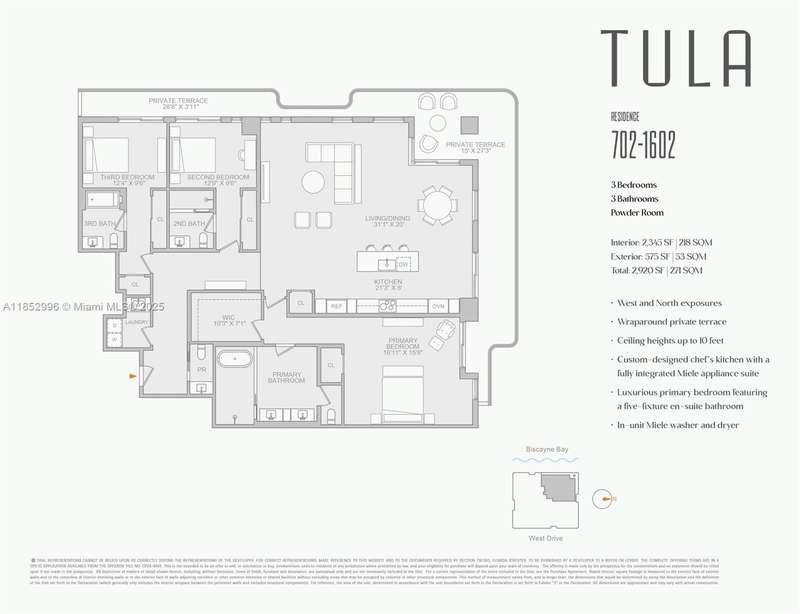 TULA Residences, a boutique luxury waterfront condominium building, home to 54 exclusive two-to-three bedroom corner Residences and six exclusive five-bedroom half-floor Penthouse masterpieces. Each residence offers max efficiency floor plans, conceptual organic interiors, 10 ft-ceilings, custom Italian-designed chef's kitchens, floor-to-ceiling windows and sliding glass doors, private wrap-around glass enclosed terraces. The best, most breathtaking, unobstructed panoramic views of Biscayne Bay, Miami's skyline and the Atlantic Ocean. Exceptional amenities include resort-style infinity pool with cabanas, fitness and wellness center, media room, lounge, pet spa, parking garage, 24-hour concierge service. Boutique in scale. Rich in character. TULA Residences.