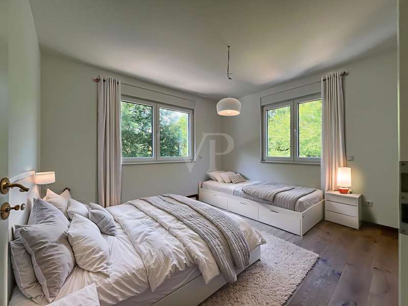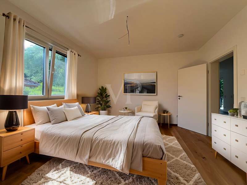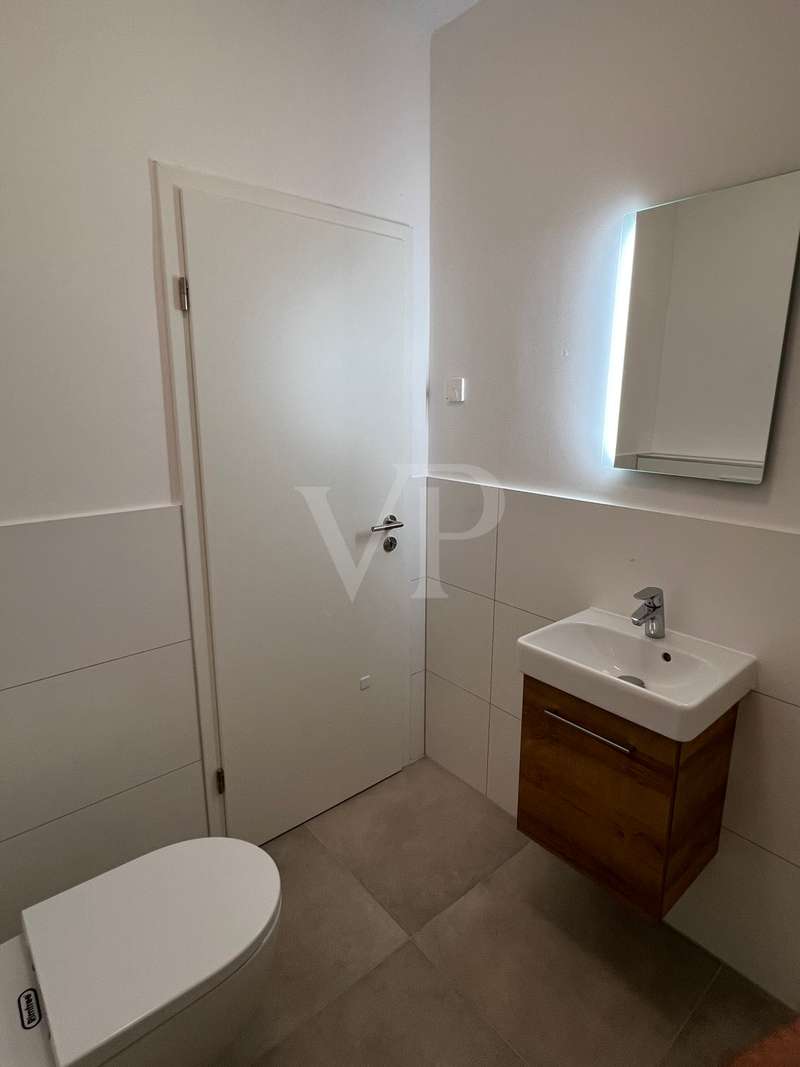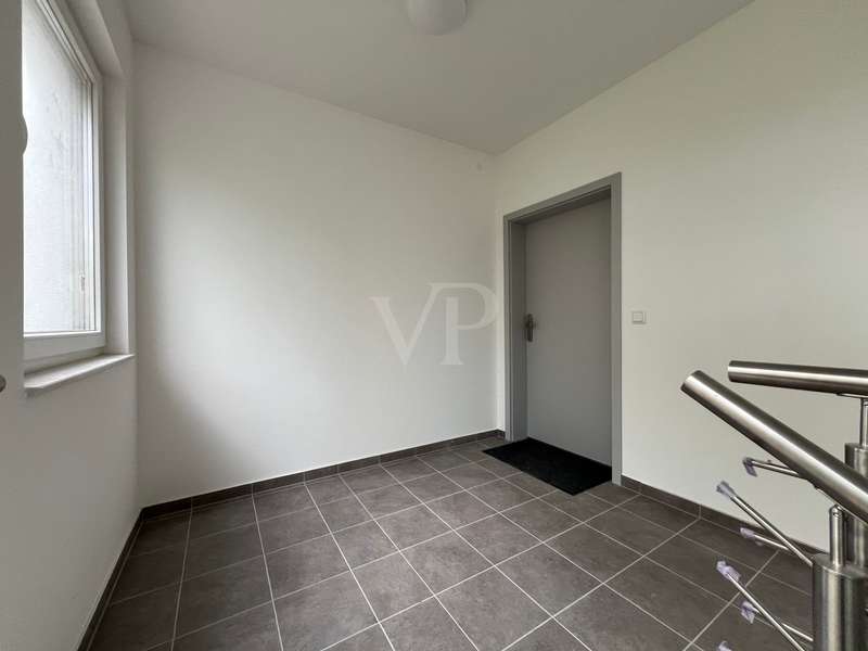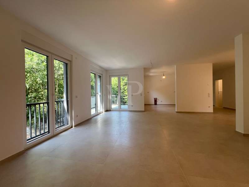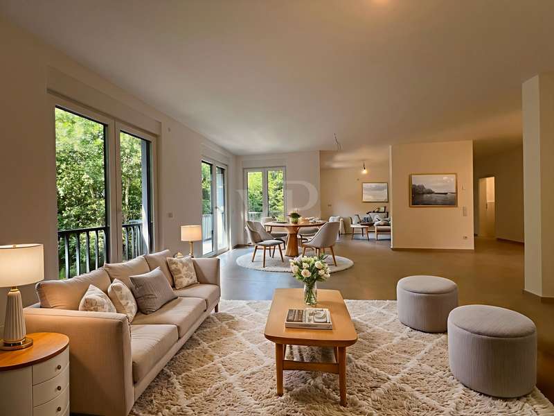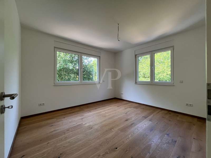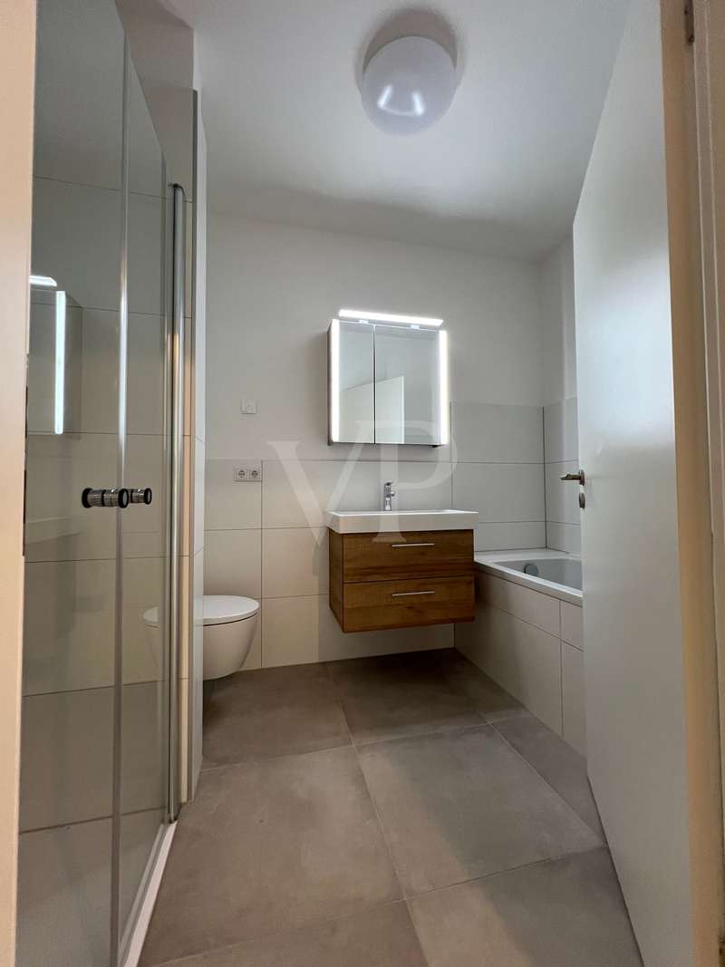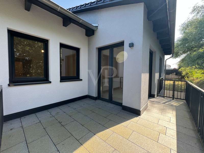 This first-class apartment is located in a modern new building in the popular Hottenbergsfeld development area of Hameln. With a living space of approx. 113.04 m², it offers generous space for comfortable living. The building, which will be completed in 2024, is characterized by contemporary construction quality and energy-efficient standards, including classification as an efficiency house according to GEG (A+). The apartment comprises three rooms, including two bedrooms and a spacious living area. It offers a high degree of flexibility in terms of room layout and use. The bathroom is equipped with a modern bathtub and ceramic, floor-level shower. There is also a separate guest WC with a washer/dryer connection. The property is furnished to a high standard. Tiling can be found in the kitchen, hallway, utility room, bathroom and WC, while high-quality parquet flooring in the bedrooms creates a warm, inviting ambience. Electric external roller shutters on all triple-glazed windows offer optimum comfort. The soundproofed apartment entrance doors contribute to peace and privacy. Another plus point is the spacious balcony with an area of approx. 11.25 m², which offers additional opportunities to relax and spend time outdoors. Underfloor heating throughout all rooms ensures cozy warmth and a pleasant living climate. This is supported by a combination of gas central heating and an air-to-water heat pump with hot water tank. A locked storage room on the top floor, which is assigned to the apartment, offers sufficient storage space. The driveways and communal areas are designed with concrete rectangular paving, which harmoniously rounds off the external appearance. Additional convenience is provided by a private parking space, which is available for €50.00 per month. The ancillary costs are currently estimated at € 200.00, as it is a new build and no consumption and billing data is available yet. The earliest possible move-in date could be August 01, 2025. The outdoor facilities still have to be completed. We would like to receive the usual documents from prospective tenants (copy of identity card, last 3 payslips, Schufa and tenant self-disclosure) at the viewing appointment.