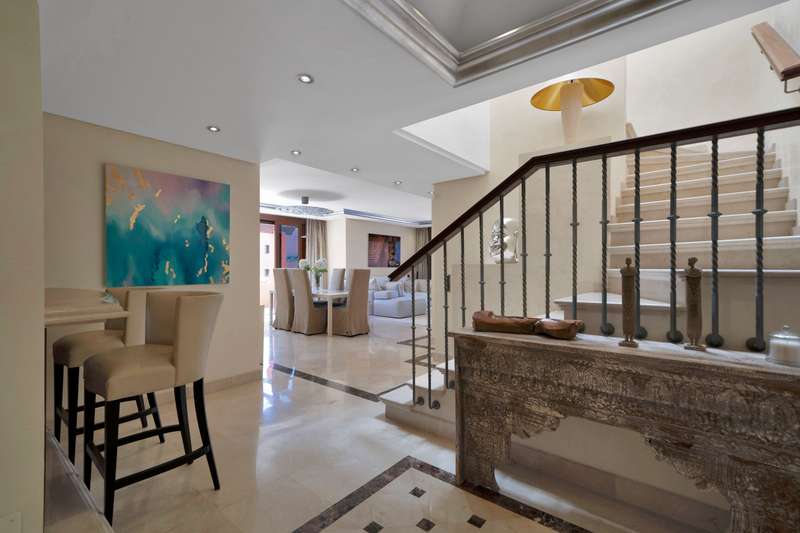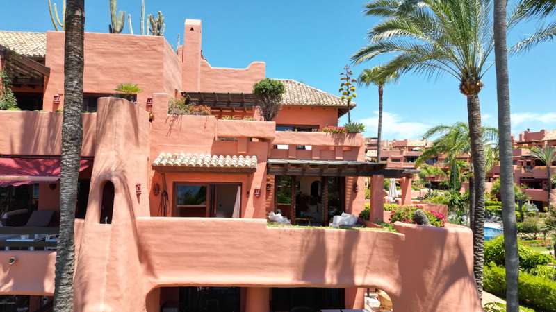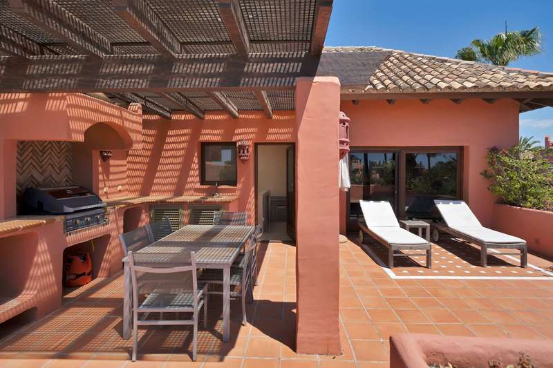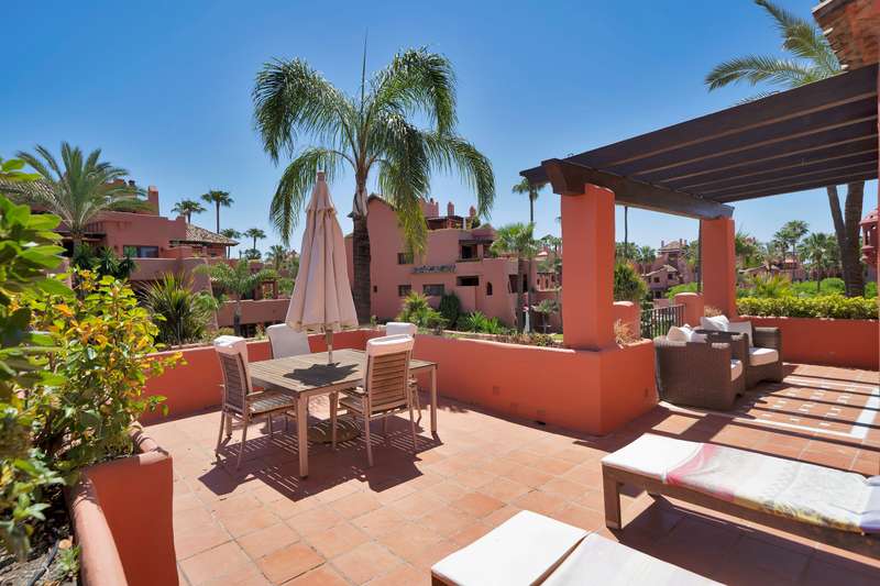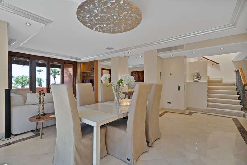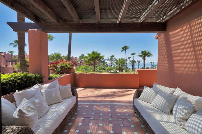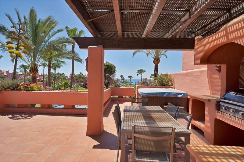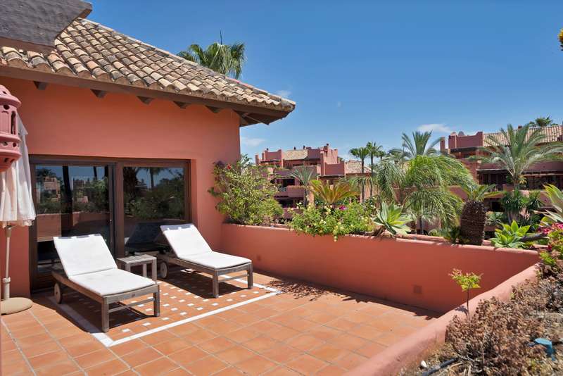 Situated just 10 minutes West of Puerto Banús, Torre Bermeja is recognised as one of the most luxurious beachfront developments ever built on the Costa del Sol. Its unique position on the New Golden Mile means the complex benefits from breathtaking views over the sparkling Mediterranean Sea and has the Sierra Bermeja mountain range as its backdrop. This First-Line exclusive Duplex-Penthouse is an outstanding gem, very rare to come on market. Nestled in an excellent beachside development that offers some of the finest facilities to be found in Southern Spain and is the ultimate in luxury living. Inspired by the architectural traditions of Andalusia, Torre Bermeja is set amongst lush sub-tropical gardens, waterfalls, cascades, infinity pools and streams entwined by Japanese style bridges. It is the perfect place for people seeking sanctuary, security and refined living. Situated in the exclusive gated community of Torre Bermeja, Estepona, with 24-hour security, this sought-after, First
