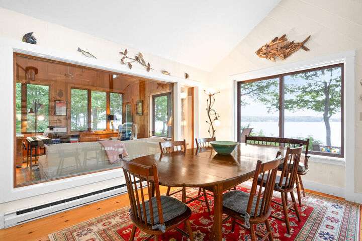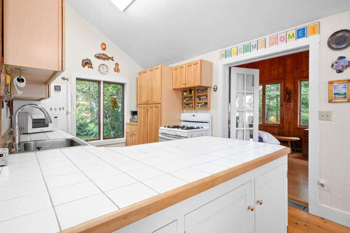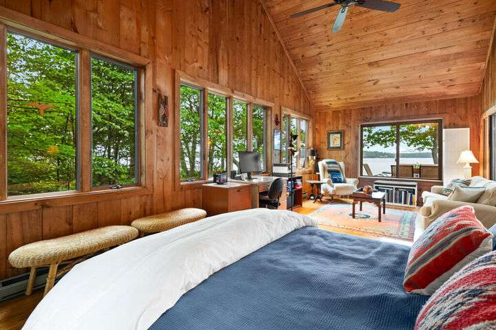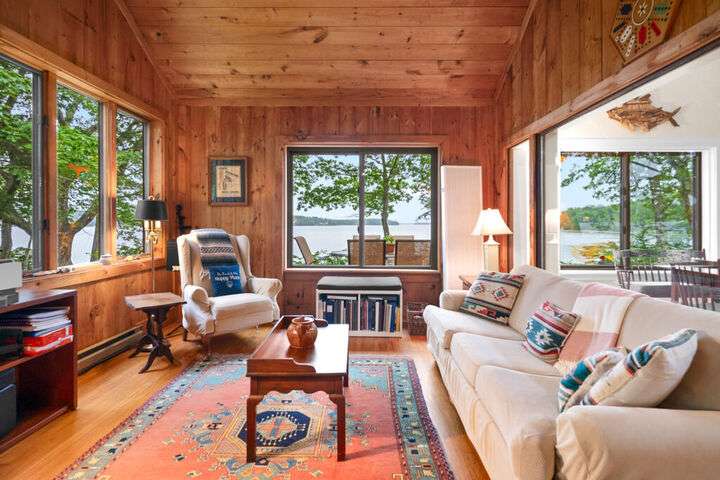 Waterfront 3BR, 2BA, retreat on Chebeague Island with 205 feet of sandy beach, sweeping Casco Bay views, on a 2.4 acre lot. Just a short ferry ride from Portland, this well maintained 1980 contemporary offers one floor living, with an open layout under cathedral ceilings and a bonus loft for flexible work or guest space. The spacious knotty pine primary suite is complete with sitting area and panoramic western views, while large windows throughout capture natural light and ocean breezes. Outdoor spaces include a 50' deck steps from the shore, an outdoor shower, and areas for clamming, kayaking, or boating. A generator, shed and conveying minivan add convenience. Offered turn key and fully furnished, with a few exclusions, this rare island property blends comfort, privacy, and year round or weekend getaway living. Community amenities include ferry service, golf, tennis, pool, dining, market, and more. Reach out today to schedule a showing!