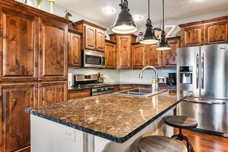 634 N. Alexandria St. Nixa MO. Come see this nice move in ready home in the great town of Nixa! This walkout basement home has so much to offer; including an open floor plan with hardwood floors and over 3,500 square feet of living space. On the main floor is a living area with a gas fireplace that is open to the dining area and kitchen with an island and granite counters and a pantry. Also on the main floor is the primary bedroom with a large on suite with a big walk in shower and walk in closet! There are also 2 more bedrooms and a full bathroom on the other side of the house.In the basement is a big open living area big enough for multiply uses, and there is a wet bar area. There is also 2 more good sized bedrooms and a full bathroom. Plus a good amount of storage space. The backyard features a covered deck and patio that is perfect for grilling and or just relaxing. The backyard is also fenced with a 6 foot wooden privacy fence. This great home is located in the nice neighborhood of The Columns At Century Park, close to the Nixa Community Center. Nixa schools!Come see this home today before it is too late!