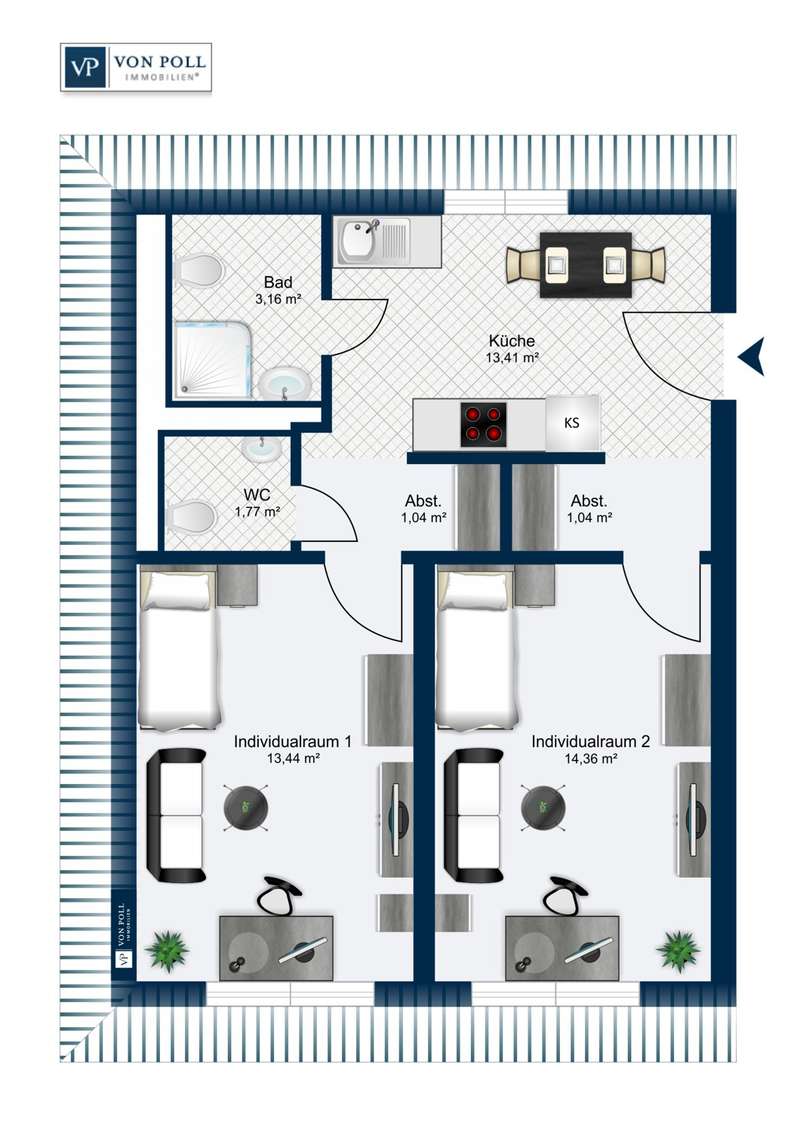 Modern apartments for investors looking for a prestigious and future-proof investment with maximum comfort and timeless elegance! The "Studentenpark Ansbach-Claffheim" project involves the construction of three new apartment buildings, each with 15 units. The apartment buildings are being constructed using solid construction methods in accordance with recognized technical standards and the relevant DIN regulations. The regional property developer stands for decades of expertise as well as for contemporary, sustainable and innovative construction. The project consists of a total of three construction phases, each with ten 1-bedroom apartments and five 2-bedroom shared flats. The individual units will be completed in May 2024 (building A), August 2024 (building B) and December 2024 (building C). The newly created floor plans impress with a clear room layout that offers full functionality even in the smallest of spaces. The individual 2-room apartments offer an entrance area with a kitchenette. Adjacent to this is the daylight bathroom with a walk-in shower, washbasin and WC. The unit also has a separate WC with window. Each resident has an individual area of approx. 15 m² with space for a bed, couch and desk. Storage space is available in the two storage niches. The units are already fully furnished when they are handed over. This includes a fitted kitchen with electrical appliances, a bathroom mirror, two beds, two sofas with a table, two closets and two desks with a pin board. All furniture is already included in the purchase price In order to guarantee standard living in the future, special emphasis is placed on sustainable construction when creating the new apartments. Thanks to renewable energy sources such as a photovoltaic system or a heat pump, the apartments can definitely be described as future-proof and independent. There is already a fixed rental agreement with "Immobilien Freistaat Bayern" for all apartment blocks from completion. This is initially valid for five years. During this time, you are guaranteed a reliable and secure rental income. Communal laundry facilities are located on the first floor. In addition, a parking space will be built on the property for each 1-bedroom apartment and a carport for each 2-bedroom unit. Come and see this forward-looking project for yourself. We would be happy to arrange a personal consultation with you. Please send us a fully completed contact request with your telephone number by e-mail. We look forward to hearing from you.