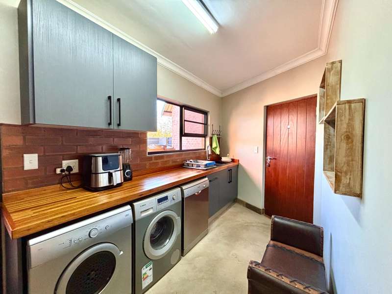 This well-designed 3-bedroom home is situated in the peaceful and secure Sondela Senior Lifestyle Estate, catering to residents aged 50 and over. With a floor area of 250 m?? on a 1,267 m?? stand, the property offers spacious, comfortable living in a beautiful natural setting. Upon entering the home, you are welcomed into a bright and spacious lounge that leads to a well-proportioned family/TV room, ideal for everyday living and entertaining. Adjacent to the lounge is a dedicated dining area that connects easily to the kitchen. The kitchen is functional and well-equipped, offering built-in cupboards, a pantry, and a separate laundry area. Air conditioning provides comfort throughout the home. There are three generously sized bedrooms, all with built-in cupboards. The main bedroom includes an en suite bathroom, while a second bathroom serves the remaining bedrooms and guests. A separate study offers a quiet space for reading, work, or hobbies.: Stepping outside, the home features a covered patio and a deck that overlook a neatly maintained garden?Çöan ideal space to relax and enjoy the natural surroundings. The property includes two garages and two open parking bays, offering ample space for residents and visitors. Additional features include a 5kW backup battery/inverter system, a 2500L water tank, and solar panels, providing peace of mind during power or water interruptions. Security & Estate Amenities: The home is located within a secure estate with 24-hour security, an access-controlled entrance, electric fencing, and a manned security post. Residents enjoy full access to a variety of lifestyle amenities within the estate, including access to Sondela Nature Reserve, swimming facilities, restaurants, a shop, and a deli, providing a balanced lifestyle in a scenic and well-maintained environment.