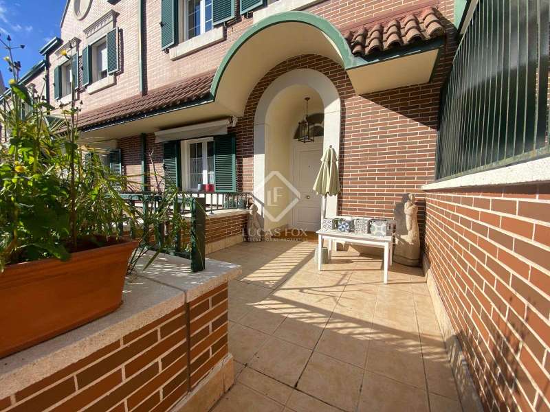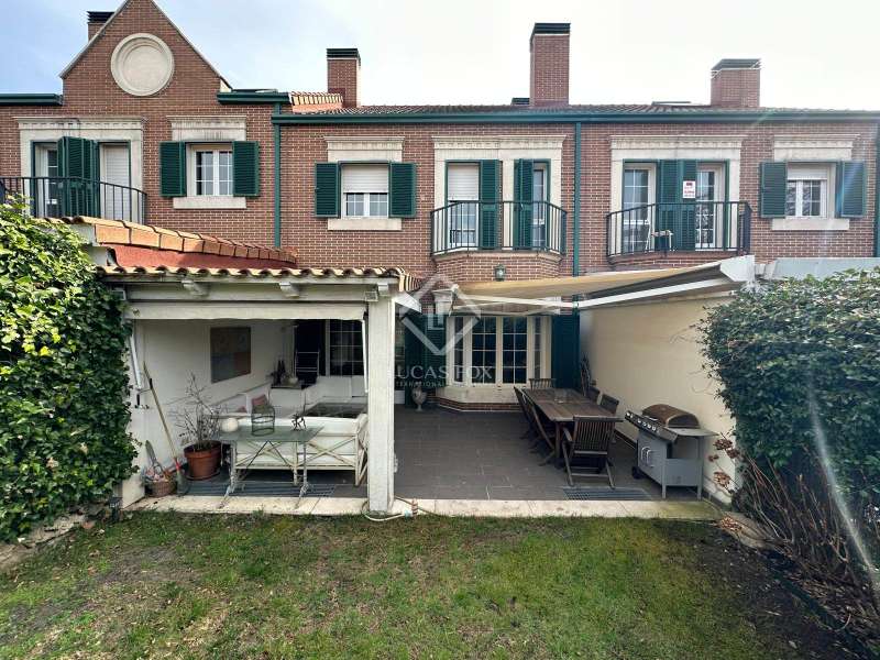 Lucas Fox La Moraleja presents this 250 m² townhouse spread over three floors. We enter the property and find a entrance hall with a coat closet and a guest toilet. On the other side, we have the kitchen with a dining area and storage space. Next, we find the living-dining room with a fireplace with different atmospheres and with access to the porch that connects to the private garden . On the upper floor , we find the night area consisting of three bedrooms, two of which share a full bathroom and the main one has a private bathroom and a terrace. On the lower floor , we find the staff bedroom, a full bathroom , laundry area, storage space, games room and garage for two cars. The house has ducted ducted air conditioning and mains gas heating. The development has 24-hour security, large green areas and sports facilities: two swimming pools, two tennis courts, two paddle tennis courts and a multipurpose room for group classes. Finally, there is also a children's playground. Please contact for more information.