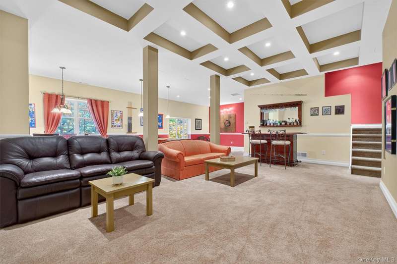 Welcome to this expansive contemporary Colonial in Peekskills sought-after Mortgage Hill neighborhood. With over 3,000 square feet of living space, this home offers room to grow, gather, and enjoy. The main level features a bright and spacious living room that flows into a formal dining area perfect for entertaining. The eat-in kitchen offers plenty of cabinet space, a center island, and sliding glass doors that open to a patio with seasonal Hudson River and mountain views. A cozy family room, mudroom with laundry area, and powder room complete the first floor. Upstairs, the primary suite includes a sitting area and a large ensuite bath. Three additional bedrooms, each offering generous space and natural light, share a well-appointed hall bath. The finished lower level is a true standoutfeaturing coffered ceilings, an open layout ideal for game days or movie nights, a stylish bar area, and a full bath with upscale finishes. Sliding doors open to a large, tree-lined backyard that offers privacy and space to unwind. Additional highlights include a spacious two-car garage and a newly paved driveway with ample parking. Conveniently located just minutes from downtown Peekskill, the Metro-North station, and scenic Depew Parkwith an easy 1-hour commute to NYC via train or major highways.
