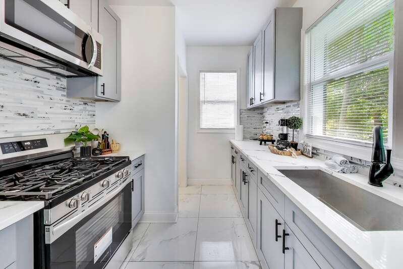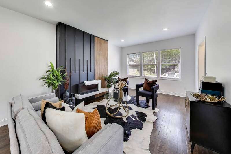 Welcome to 3771 Van Buren St., a stunning 5-bedroom, 3-bathroom home that blends timeless brick construction with modern luxury finishes. From the moment you step inside, you'll be captivated by the open-concept design, gleaming hardwood floors, and a striking custom floating fireplace that anchors the living space with style and warmth. The chef's kitchen is a true showpiece, featuring luxury quartz countertops, an L-shaped waterfall island, full stainless steel appliance package, and sleek LED & recessed lighting. Flow seamlessly into the formal dining room and living areas, where oversized windows allow natural light to pour in, creating a bright, airy atmosphere. The main level offers three spacious bedrooms and a beautifully updated full bath. Retreat to the lower-level primary suite, complete with a private full bath and an additional versatile bedroom or office space. The expansive recreation area provides the perfect backdrop for family gatherings, entertaining, or quiet relaxation. A dedicated laundry room adds convenience to everyday living. Step outside to find a newly built 2.5-car garage with a modern remote system, perfectly complementing this home's thoughtful updates. From its flowing layout and high-end finishes to the serene ambiance and abundant natural light, this residence exudes quality and sophistication. Ideally located in the heart of Gary, it's ready to welcome the perfect buyer home. Don't miss your chance to experience the luxury, serenity, and modern design of 3771 Van Buren St.--a true must-see!