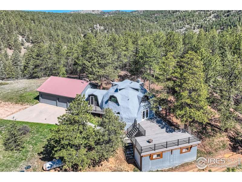 Just a mere 15-20 minutes driving from downtown Boulder, tranquility awaits you, the new owner, of this architecturally unique home with an enormous deck (over 700 SF of deck!!) for outdoor living and a massive garage (4 spaces total) where workshop use or toy-storage and gear storage abound. Recently remodeled and upgraded to include wood floors and a well designed kitchen with granite island and modern backsplash. Bathrooms have new tile floors. Free-standing wood stove compliments the mountain aesthetic and will warm you through Colorado's seasons. Surrounded by National Forest, this home sits on 2.95 acres. Well positioned, the home takes in southern sun exposure. Priced for amazing value! Wildfire Partners certified. Only 6.8 miles from the edge of Boulder's Eben G. Fine Park. Close by are Boulder County's premier Betasso Preserve and the Switzerland Trail. Live the mountain dream so close to all that Boulder has to offer. Get ECSTATIC about... 387 Millionaire Drive!