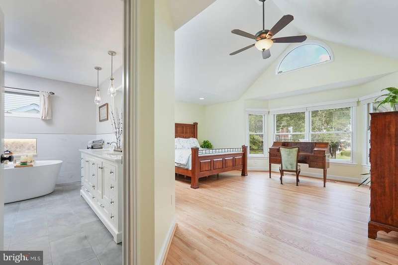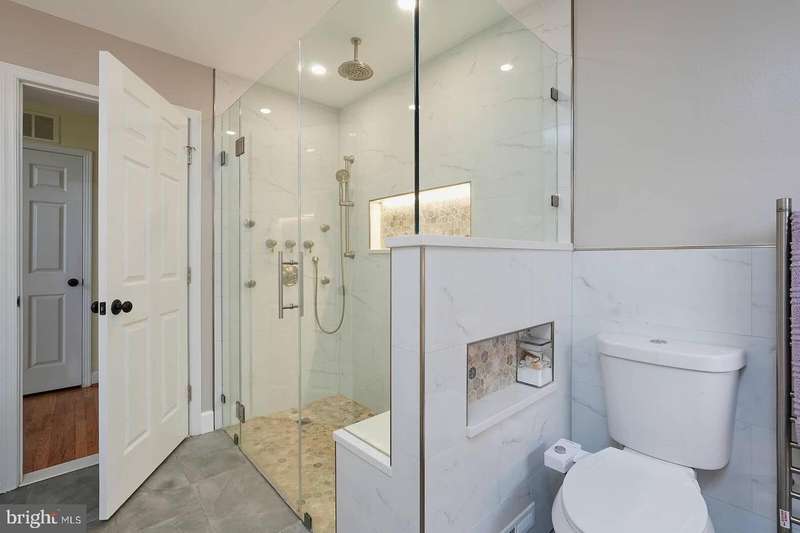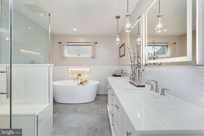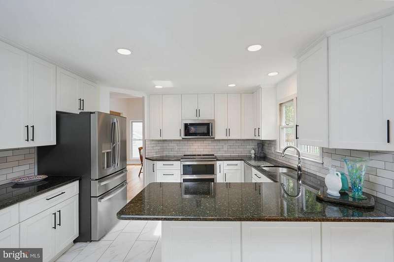 Welcome to this beautifully updated colonial-contemporary in the highly sought-after Woodside Forest neighborhood of Silver Spring. Nestled on a quiet street with tree-lined median, and just steps from tranquil Sligo Creek Park, this home offers the perfect blend of peaceful surroundings and unbeatable convenience. Enjoy easy access to the Capital Beltway, Forest Glen and Silver Spring Metros, walking/biking trails, downtown Silver Spring, and Washington D.C.-all within minutes. Inside, you'll love the freshly painted interior, refinished hardwood floors, an open, sun-filled layout, and thoughtful updates throughout. The front living room welcomes you with versatility and warmth. A spacious formal dining room flows directly to the remodeled kitchen, where granite countertops, crisp white cabinetry, stainless steel appliances, and a large peninsula create a stylish and functional hub. A well-appointed eat-in breakfast area-with space for a full table and chairs, an adjacent pantry, and primary-level laundry-rounds out the space, providing a natural, open transition into the family room. Anchored by a cozy wood-burning fireplace, the family room opens to the backyard through a sliding glass door. Step outside to your private, fenced yard that offers a flagstone patio, lush gardens, and custom stonework-ideal for entertaining or simply unwinding on a quiet evening. The main-level primary suite is a true haven, featuring two walk-in closets and a spa-like bath with an over-sized Jacuzzi soaking tub, expanded walk-in shower, dual vanity and custom mirrors. A renovated powder room completes the main level. Upstairs, you'll find three spacious bedrooms with abundant closet space plus an updated, full Hollywood-style bath and linen closet. The finished lower level expands your living space, featuring a large rec room, guest bedroom and updated full bath, ample storage, and a roomy two-car garage. This home truly has it all: style, comfort, and location-move in and enjoy your new home in the welcoming Woodside Forest.