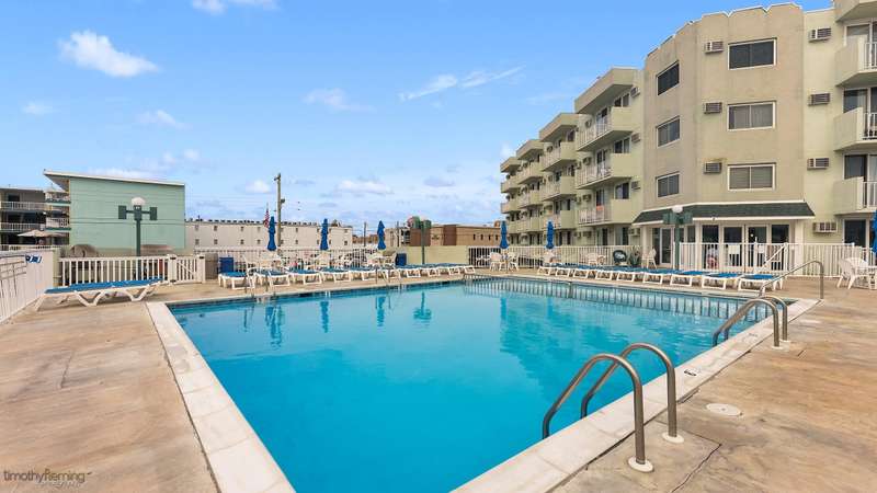 The Penthouse Baby! We got a Deeluxe Apartment in the Sky-yy-yyy! This 1 bedroom 1 bathroom updated money maker has everything you are looking for: prime location 2 blocks to the beach and boardwalk, huge sparkling pool, updated and fully furnished interior! Step out onto your private balcony and take in a front-row view of Morey's Piers Ferris wheel and Wildwood's Friday night fireworks, a spectacular way to cap off your summer nights. 2025 brought in $22,000 in rentals. This is a seasonal property and operates from March to November. Numerous recent complex upgrades & improvements: New Roof, New Condo AC Sleeves, Complex Painted, Walkways Redone, New Gutters.