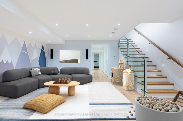 Located just steps from Bloor Street on one of the most desirable blocks in the Annex, this exquisite home is filled with nearly 3,800 Sq Ft of elevated, livable elegance. From the moment you enter, you're drawn through thoughtfully designed spaces with an architectural staircase winding through 4 levels. The open-concept main floor flows perfectly for both memorable entertaining & intimate gatherings with light that pours in from floor-to-ceiling windows. A culinary paradise in the sleek kitchen boasts integrated appliances, smooth countertops and a mix of high-gloss cabinetry & exquisite custom millwork. A warm, inviting sitting room beckons viewing parties with the TV feature wall & contemporary gas fireplace, illuminated by recessed lighting. Take a leisurely promenade via sliding doors to the newly-built deck with gas connection & garden terrace with fire table. Generous for central Toronto, there's tremendous potential in the verdant backyard. At the front of the 2nd level, a large suite features its own balcony & ensuite bath. There's no need to settle any sibling rivalries over who gets the best room with two delightful bedrooms that share a bathroom w/ double sinks; perfect for busy mornings. A hallway closet with rough-in for laundry offers added convenience to this family-friendly layout. The entire 3rd floor is dedicated to the serene Primary with 2 organized walk-in closets and a spa-inspired ensuite with heated floors, freestanding tub & separate WC for added privacy. Step out onto the oversized deck to take in leafy, panoramic views while unwinding in style. The fully finished lower level presents space for family activities, a home gym, plus a 5th bedroom & full bath. This turn-key home is replete with upgrades like built-in speakers & discreet switch-controlled window coverings in all of the principal rooms. Discover the best of the city by foot/bike with nearby parks, schools, world-class shopping, dining, museums & effortless access to the subway.