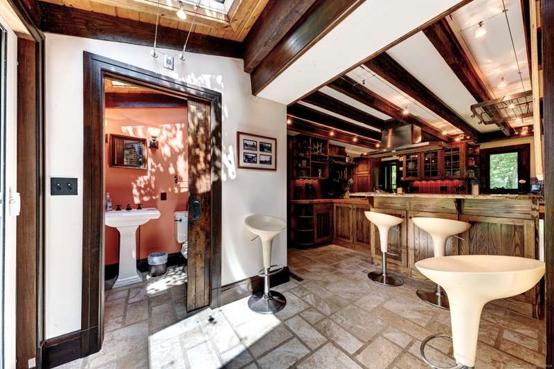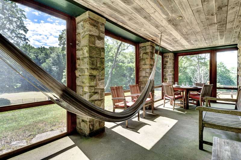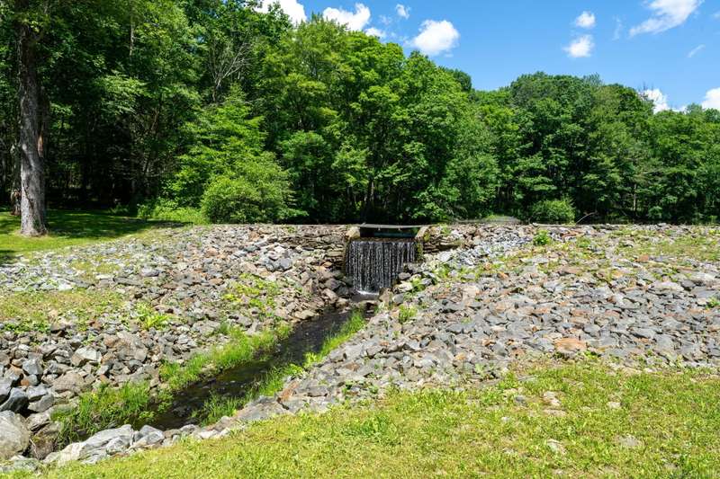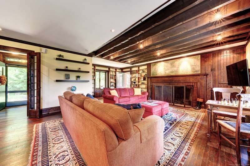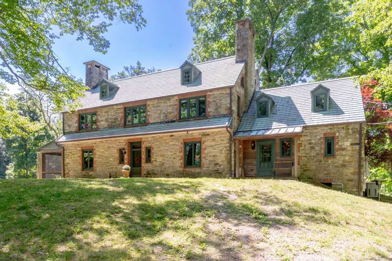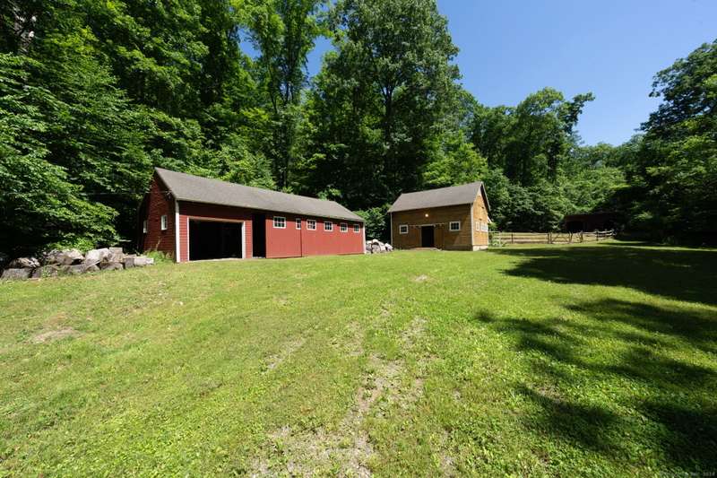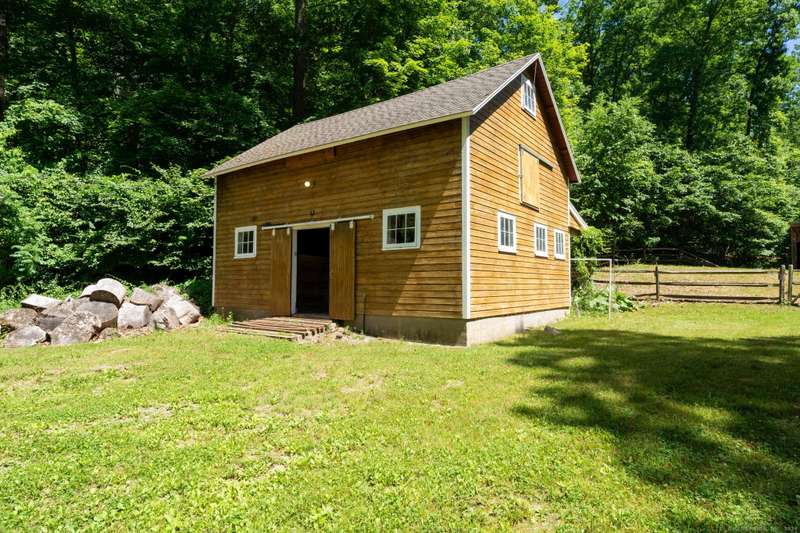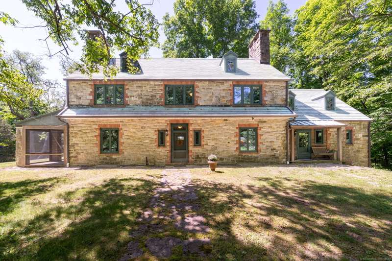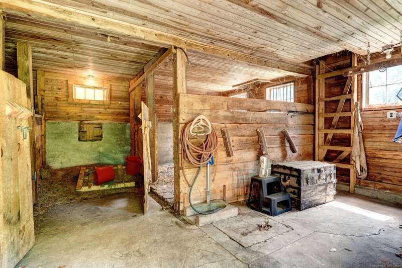 Originally designed and custom built on site with stones from property for local Doctor as a private English style hunting cottage in 1922. Almost 46 acres of privacy yet close to it all. Property features three working fireplaces, solid birch hardwood floors, 2 staircases to bedrooms with primary en-suite spa style shower and a copper roof. Quality updates in kitchen and all bathroom appointments. Views of 2 riding stables, 3 outbuildings with power and water in one that is set up for horses. Original unpainted woodwork throughout. 3 season porch, upstairs staff quarters and full walk-up attic with dormers and working wood furnace and plumbing. House can be heated by wood or oil with hybrid dual combo system by Thermopride (recently serviced) Original in-house wood carrying dumbwaiter to make stocking the fireplace easy. NEW WELL PRESSURE TANK, NEW WATER FILTRATION SYSTEM, NEWER OIL TANKS IN EXCELLENT CONDITION, UPDATED 200 AMP ELECTRIC SERVICE, NEWER WIRING and RECENT PLUMBING UPDATE