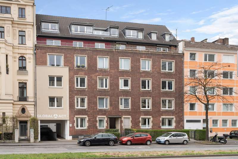 VON POLL IMMOBILIEN presents this attractive 4-room apartment on the second floor of an apartment building built in 1948, which was extensively modernized in 2019. With a living space of approx. 101 m², the apartment offers a well thought-out room layout with four rooms, kitchen, hallway, a modern shower room and a guest WC. The open-plan design ensures flowing transitions and a spacious, inviting feeling of living, while the three separate rooms offer versatile retreats. The heart of the apartment is the light-flooded living and dining area. The stylish country-style fitted kitchen invites you to enjoy culinary delights and offers direct access to the approx. 13 m² balcony with a view of the quiet inner courtyard - perfect for relaxing hours outdoors. In addition to the living area, there are three further rooms. The bedroom offers enough space for a comfortable bed as well as storage space for a dressing room. Two further rooms are suitable as a children's room/study and a separate guest room. The space is rounded off by the modernized shower room and a separate guest WC. Heating is provided by an efficient district heating system. Since the last modernization in 2019, the apartment has been in a contemporary, well-kept condition. The monthly house fee is currently EUR 505 including maintenance reserve. Have we piqued your interest? We would be happy to provide you with further information or arrange a viewing.
