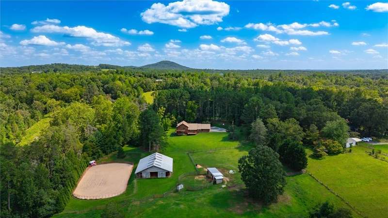 Welcome to 1100 Mile Creek Rd, a rare gem nestled in the heart of the Blue Ridge Mountains in Pickens, SC, offering an unparalleled blend of rustic charm and modern luxury across 42.28 pristine acres. This 4-bedroom, 2.5-bathroom ranch-style home with a large covered side porch, 3 decks facing the panoramic views of the mountains and farm, 3 car garage with room for a workshop, open concept loft area over the kitchen and living room, spans over 2,300 sq ft and is thoughtfully designed for comfort and style, blending rustic warmth with contemporary finishes. Step inside and experience open, airy living spaces, perfect for both relaxing and entertaining.The property is a paradise for equestrian enthusiasts, with two expansive, cleared and fenced pastures, a 50' fenced round pen with 4 adjacent horse stalls , a 60x60 barn with storage and a tack room, and a 21'x 23' hay feeding shed. Whether you're a seasoned rider or enjoy recreational equestrian activities, this estate is equipped to fulfill every need. Additionally, a spacious 80'x 150' arena awaits, perfect for training and riding.Set against the backdrop of the Blue Ridge Mountains, the property offers sweeping panoramic views that include Whitewater Falls and the Bad Creek Project, with sightlines extending across three states. All of this is seen right from your backyard. Immerse yourself in nature with walking and riding trails that wind alongside two scenic creeks, showcasing numerous water features, including a magnificent 30-40 foot rock waterfall. This estate embodies a unique blend of outdoor adventure, serene privacy, and luxury living, making it a dream home for those seeking a true escape.This estate has ½ mile of road frontage as well as several beautiful areas for potential new home sites. Located 5 miles to Crowe Creek and Mile Creek Boat landings, 5 miles to numerous camp sites with parks on Lake Keowee. 7 Miles to Pickens, 14 Miles to Clemson, 27 Miles to downtown Greenville. This is truly a location that is rare and highly sought after!Don't miss the chance to experience this one-of-a-kind sanctuary where rustic beauty and refined amenities create a lifestyle like no other.