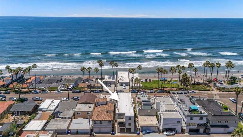 Panoramic white-water views set the stage at this brand-new modern beach home on Oceanside's iconic Pacific Street. Just steps from the sand, this is one of two newly completed residences in a striking duplex--each with its own utilities and legal parcel number. Don't miss the rare opportunity to purchase one or both homes and own the entire building, offering the flexibility for investment or multigenerational living (Other address is 212 S Pacific St MLS # NDP2507463). This top floor 5-bedroom, 2.5-bath home offers 2,650 sq ft of light-filled space with clean modern finishes throughout. The open-concept main living area flows directly to a spacious ocean-facing deck--perfect for dining al fresco, watching surfers skim the waves, and taking in the unforgettable sunsets. The oversized primary suite includes a retreat area, walk-in closet, and private balcony. Additional highlights include a 1-car garage plus tandem covered parking, ductless A/C throughout, and a west facing ground level patio, with ocean views of course! Enjoy effortless access to the beach right across the street, bring your surfboards and boogie boards! Ideally located just two blocks to the Oceanside Pier and within walking distance to the city's best restaurants, rooftop bars, cafes, and the weekly farmers market. With prime beach access and short-term rental potential, this property offers both an exceptional lifestyle and investment opportunity. Own a piece of the coast on one of Southern California's most desirable beachside streets.