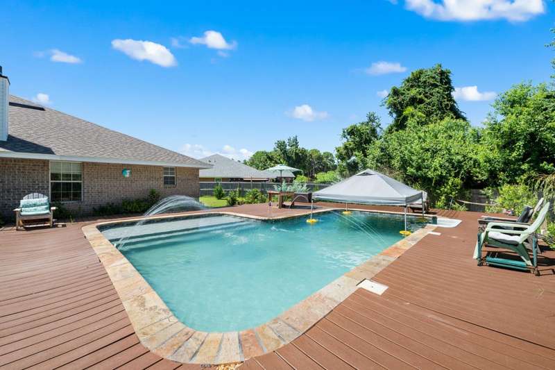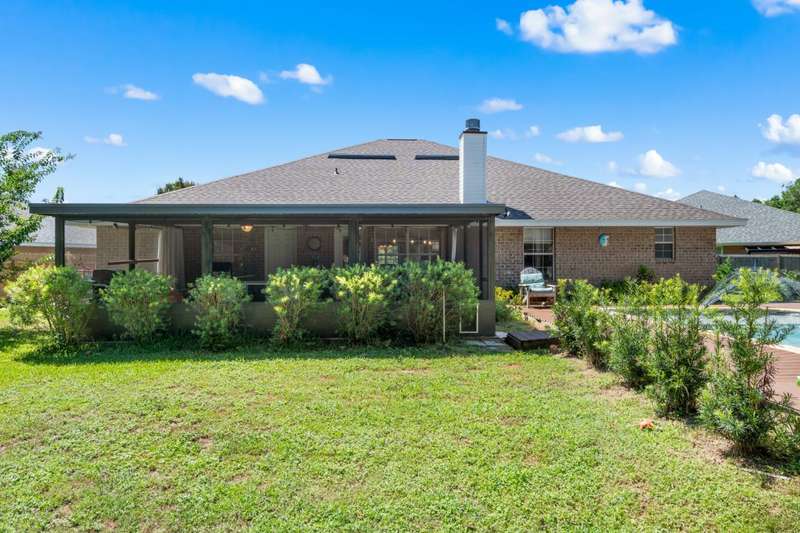 Experience the essence of coastal living in this spacious 4-bedroom, 3-bathroom all-brick home, located in the Grand Ridge community of Gulf Breeze. Just minutes from pristine beaches, area schools, and the Oriole Beach boat launch, this move-in-ready residence offers a balance of convenience and space-- there are no HOA restrictions, so bring your boat and enjoy! The heart of this home is its kitchen, featuring abundant cabinetry, generous countertops, breakfast bar, and pantry, which seamlessly flow into the bright living room with its soaring vaulted ceilings, charming white stacked stone fireplace, and direct access to the patio. Entertain effortlessly in the dining room with large windows overlooking the front yard. There is also an additional room conveniently located off the foyer which can be used as a home office, game room, or second living area. Designed for privacy and comfort, the thoughtful floor plan leads to a spacious backyard oasis, complete with a salt water pool with tanning ledgeideal for relaxation or play. Unwind in the private screened-in patio while children and pets roam freely in the fully fenced yard, complemented by a storage building that could double as a stylish poolside cabana, and there is also a 30 amp hook up for an RV. A brand-new roof with premium underlayment ensures peace of mind and potential insurance savings. Don't miss this opportunity to own a slice of paradise in Grand Ridge! Schedule your private tour today to discover the blend of comfort, and coastal charm.