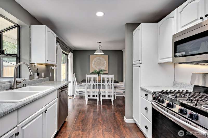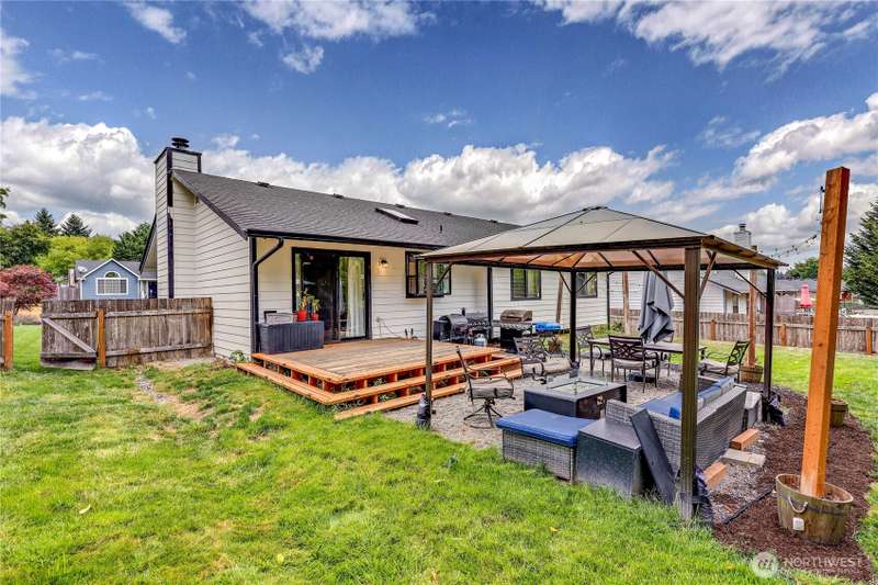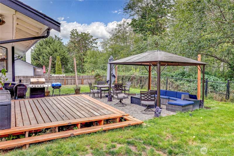 Discover the perfect 3-bedroom, 2-bath rambler in Port Orchard, tucked away at the end of a cul-de-sac just minutes from town! The welcoming covered front porch that looks out to the manicured front lawn is just one of the first perks that this home offers! The light filled home has tons of upgrades w/designer laminate flooring through the main living areas, spacious living room w/ floor to ceiling shelving & cozy wood burning fireplace opens to dining room & kitchen w/gas. The Primary Suite boasts walk-in closet & upgraded designer bath w/ oversized custom tiled shower! The other two bedrooms are spacious & fully updated 2nd bath w/custom vanity. The outdoor living is amazing w/entertainment sized deck, separate gazebo & fully fenced!