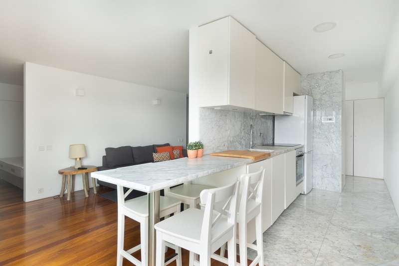 Excellent one-bedroom flat for sale in Lordelo do Ouro that provides the opportunity to reside in a privileged area of the city. It is distinguished by the modern lines of its interior, designed by architect Pedro Guimares, and by the comfort and convenience it provides, adapting to any lifestyle. It features a spacious living and dining area, a fully-equipped kitchen, a bedroom suite, and a large terrace with city views. Additionally, there is a garage for one vehicle. In close proximity to schools, shopping districts, recreational opportunities, and stunning beaches. A location that is central and easily accessible. CHARACTERISTICS:Area: 79 m2 | 848 sq ft Bedrooms: 1 Garage: 1 Energy efficiency: B- FEATURES: Penthouse 1-bedroom Terrace