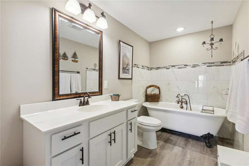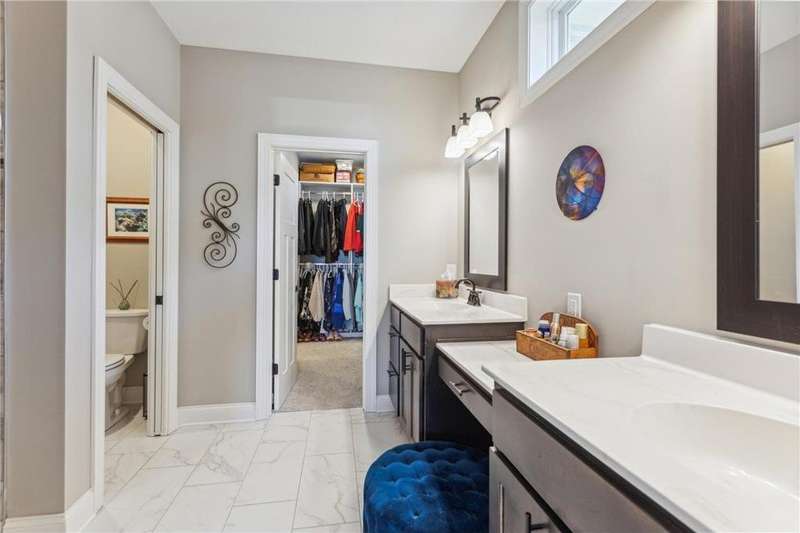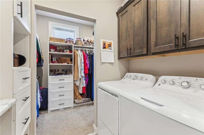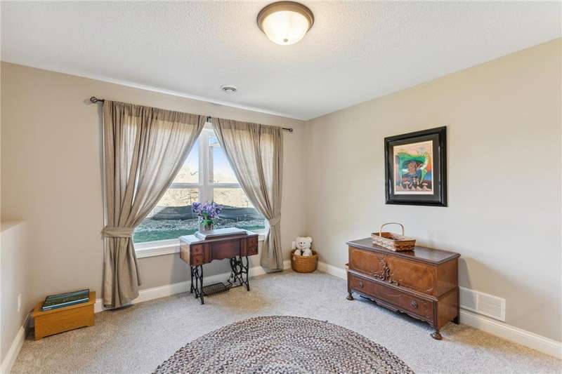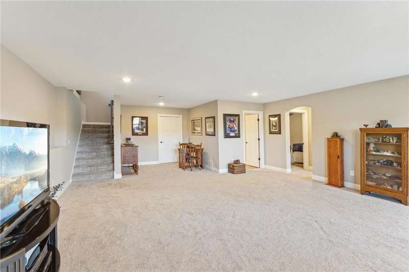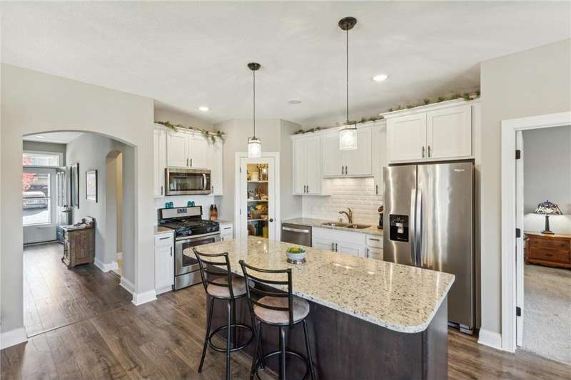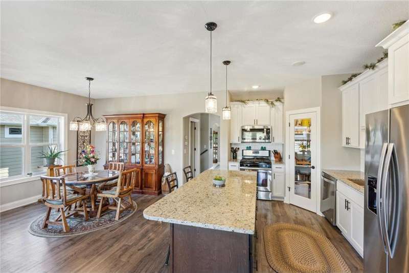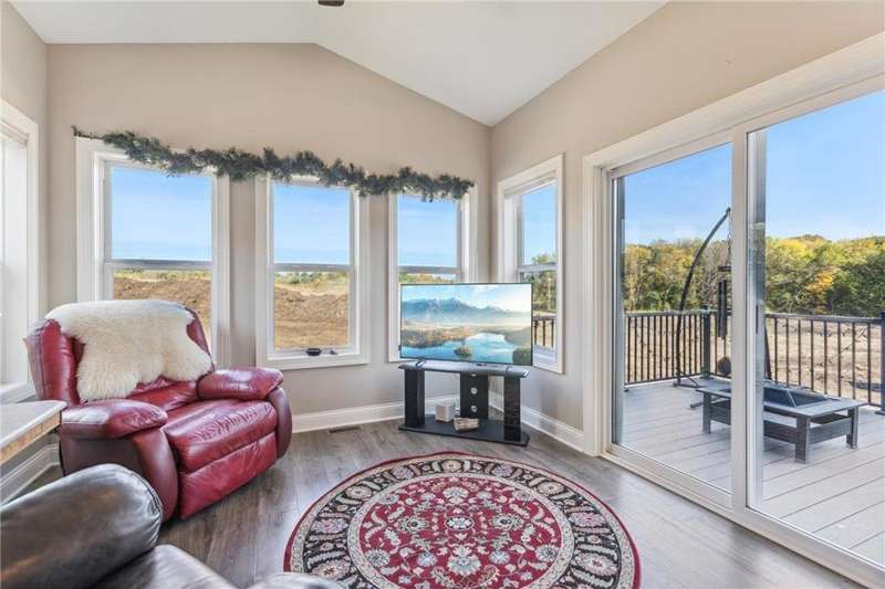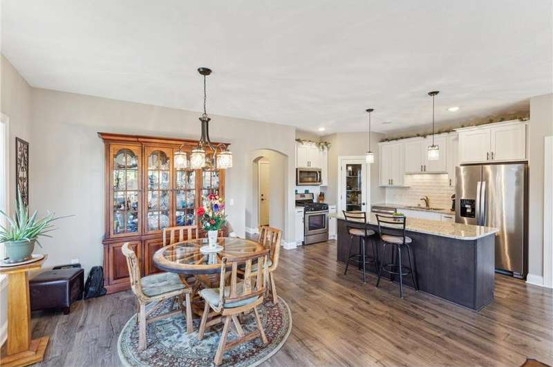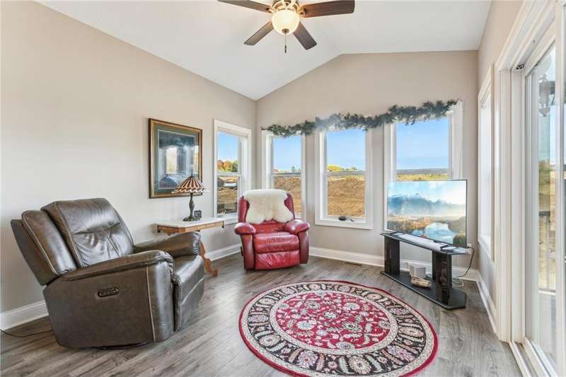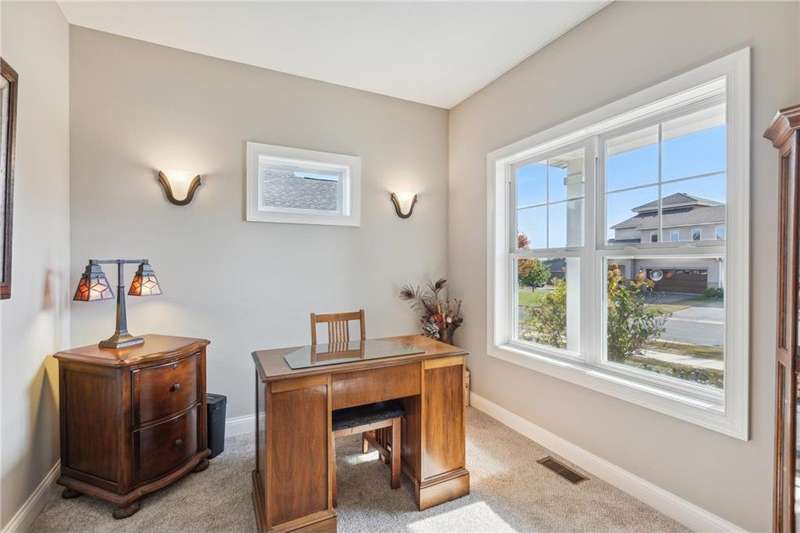 This beautifully designed walkout rambler offers a thoughtfully crafted layout, perfect for both everyday one level living and entertaining. The open-concept kitchen, living, and dining areas flow seamlessly into a bright and inviting sunroom, providing the perfect space to relax and unwind. Enjoy the gas fireplace on the main floor in the living room surrounded by gorgeous built ins. The luxurious primary suite boasts a walk-in tiled shower, an oversized walk-in closet with custom organization by Closets By Design, and convenient access to the laundry and mud room. A versatile main-level flex room offers endless possibilities as an office, den, or additional bedroom. The walkout lower level features a spacious family room with a second gas fireplace, two generously sized guest bedrooms, a full bath, and ample storage. Step outside and enjoy scenic walking trails winding through restored wetlands.