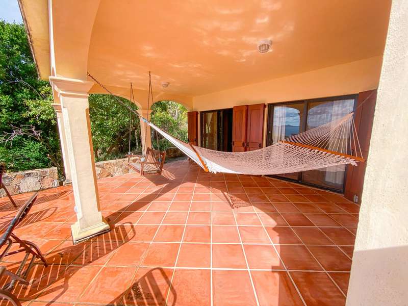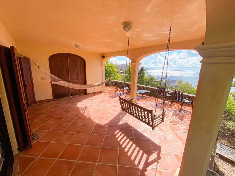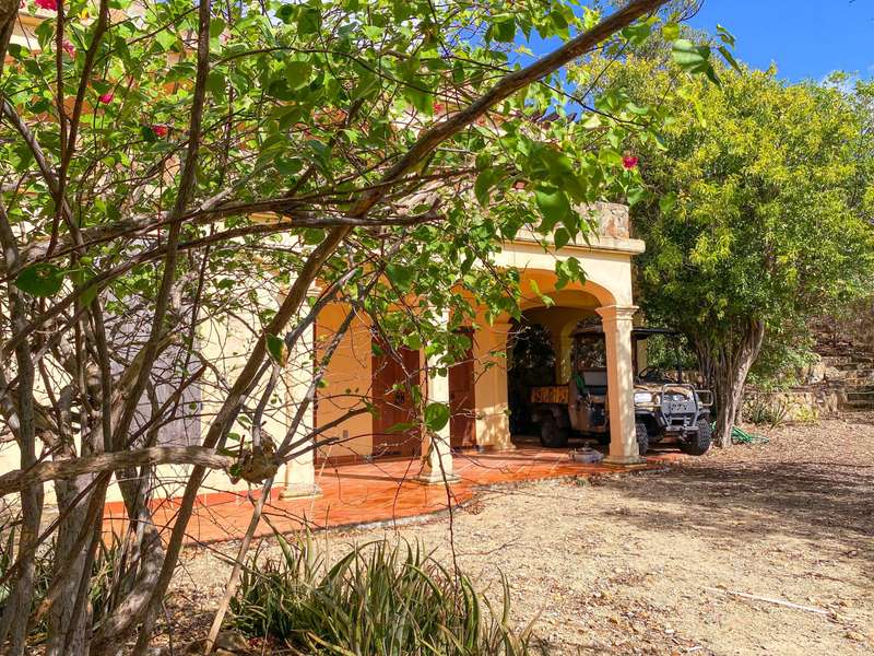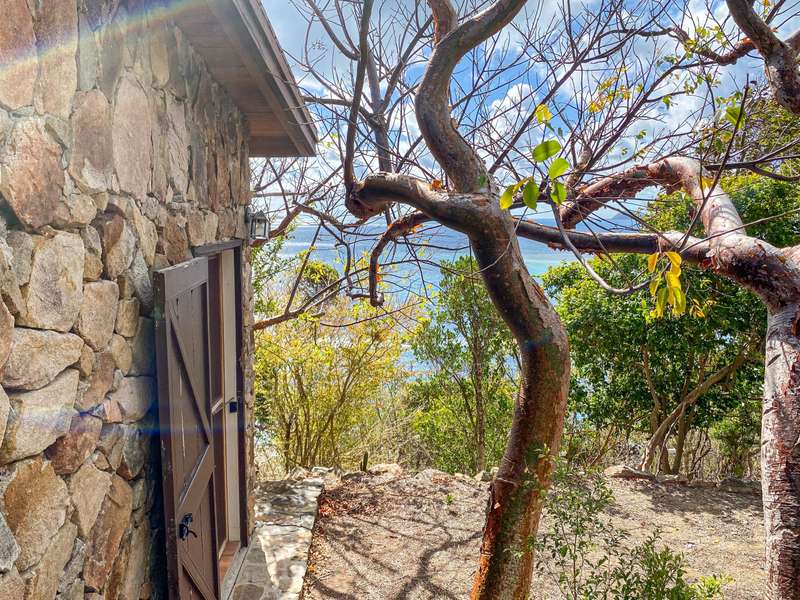 This hurricane damaged property is set on 3 acres within the private Privateers Estate on Great Camanoe. The parcel runs along the waterfront and is circa 200 feet above sea level. The property is arranged over three tiers with a separate artist’s studio or guest bedroom. The property is leasehold with 41 years remaining and is selling ‘as is’. The upper tier, which needs reconstruction, had the kitchen, living room, bathroom and outside dining terrace. The two lower tiers are structurally sound. The middle tier comprises 1 ensuite bedroom with a spacious exterior deck and a hot tub. The lower tier has a library/home office, bathroom and another large exterior deck. There is a storage/tool room as well on this level. In addition, there is a stand-alone guest cottage/artists studio comprising 1 room and a bathroom with outside shower. The different tiers of the property are connected by external stone stairs and walkways which provide great charm. The gardens, whilst unkempt, have considerable potential for landscaping. The property is protected by a stone wall and access is via a paved road that leads from the marina. Access to Great Camanoe is via boat only. The property comes with a 17 foot Henry-O outboard motorboat and a diesel engine Kubota RTV.