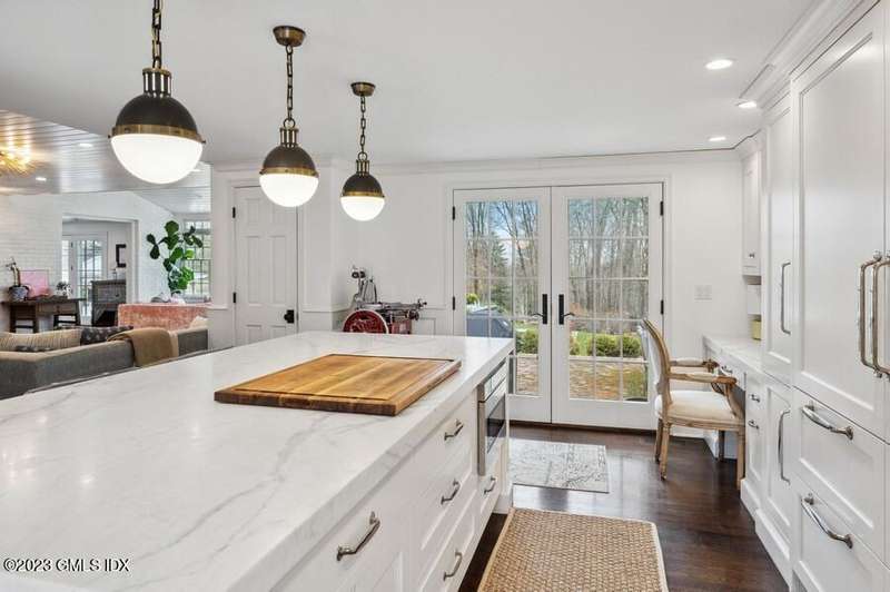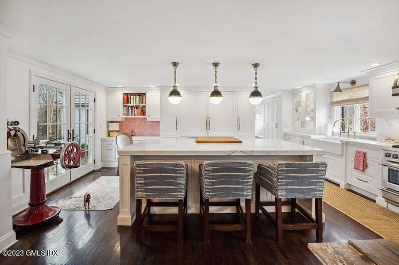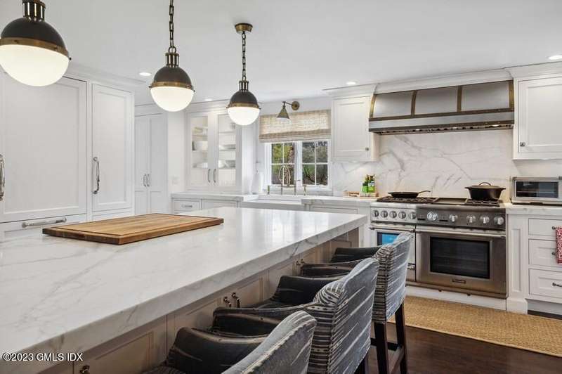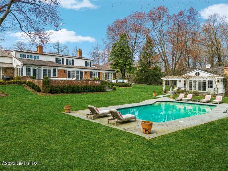 Welcome to your private retreat—an idyllic country oasis set on over 4 lush acres with mature plantings, flowering trees, and serene landscape. This extraordinary property offers a unique blend of luxury, comfort, and versatility, with multiple living spaces designed for both relaxation and entertainment. The main house features a high-end kitchen that seamlessly flows into the family room, complete with a wet bar. French doors open onto the expansive patio and pool area, perfect for indoor-outdoor living. A more formal living room offers a cozy fireplace, breathtaking views, and additional access to the beautifully landscaped yard. The first-floor primary suite is a sanctuary, boasting its own fireplace and French doors leading to the yard. Separate from the main residence, the barn has been thoughtfully designed to serve as a guest suite or a stylish home office. It includes a kitchenette and a full bathroom, offering privacy and flexibility for guests or remote work. The pool house elevates guest accommodations to the next level, functioning as a complete guest home. It features a bedroom, full bathroom, a fully equipped kitchen, a cozy living area with fireplace, a gym, and even a bunk room for additional sleeping space. Whether you're entertaining, hosting guests, or simply enjoying a peaceful lifestyle, this property is the perfect blend of charm, and easy living.