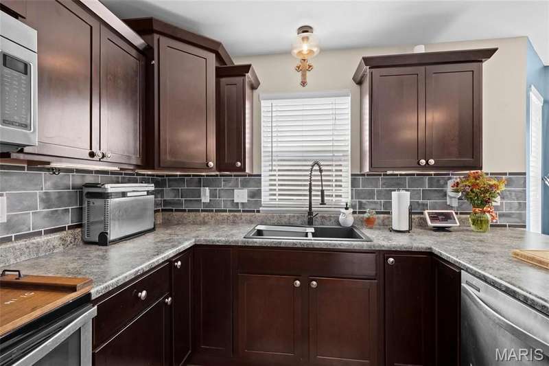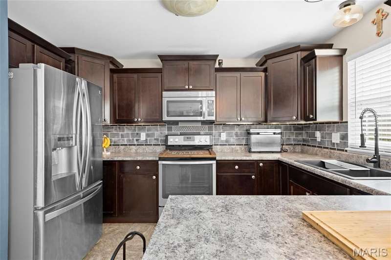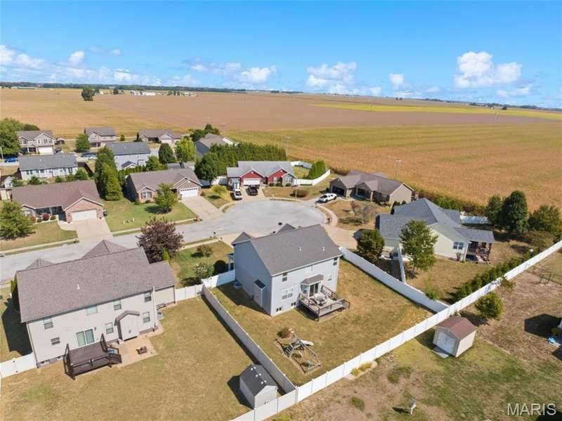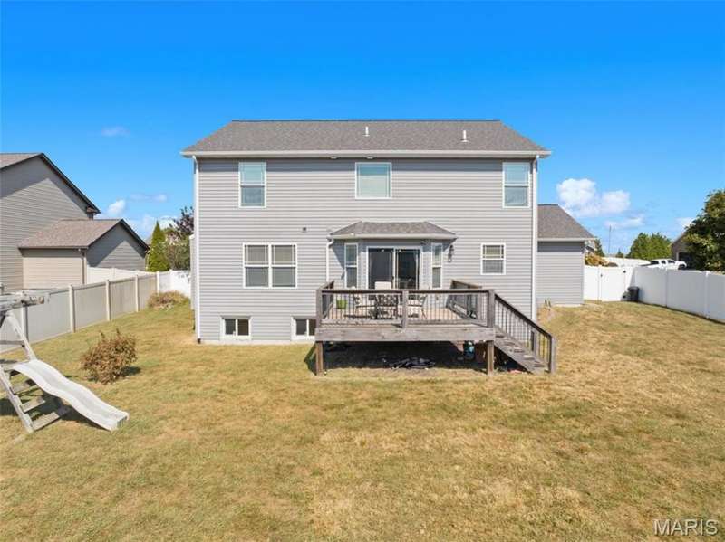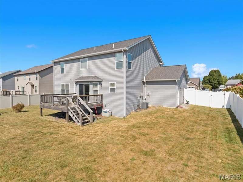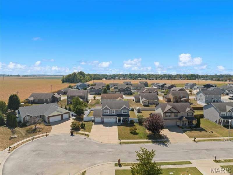***NEW PRICE ***Do not miss this welcoming 5 bedroom, 3 bath home on cul-de-sac lot in Mascoutah! Perfect for today's lifestyle. As you enter you find a large office space with built-in cabinetry and desks. which flows to open main area of first floor. Spacious kitchen with ample cabinetry, solid surface tops, breakfast bar with separate beverage bar, stainless appliances and dining area, family room with gas fireplace with access to 14 x 14 deck and privacy fenced level rear yard complete this gathering space. Upper level offers primary bedroom with vaulted ceiling, private bath, with garden tub for your relaxation and separate shower. 4 additional bedrooms provide space for all. Lower level has 9 ft ceilings, rough in plumbing for bath and egress window for potential future needs and ample storage. 3 car garage and driveway space. Highly desired school district with convenient access to Scott Air Force Base, and Interstate for easy St. Louis commute. Call for you tour today!